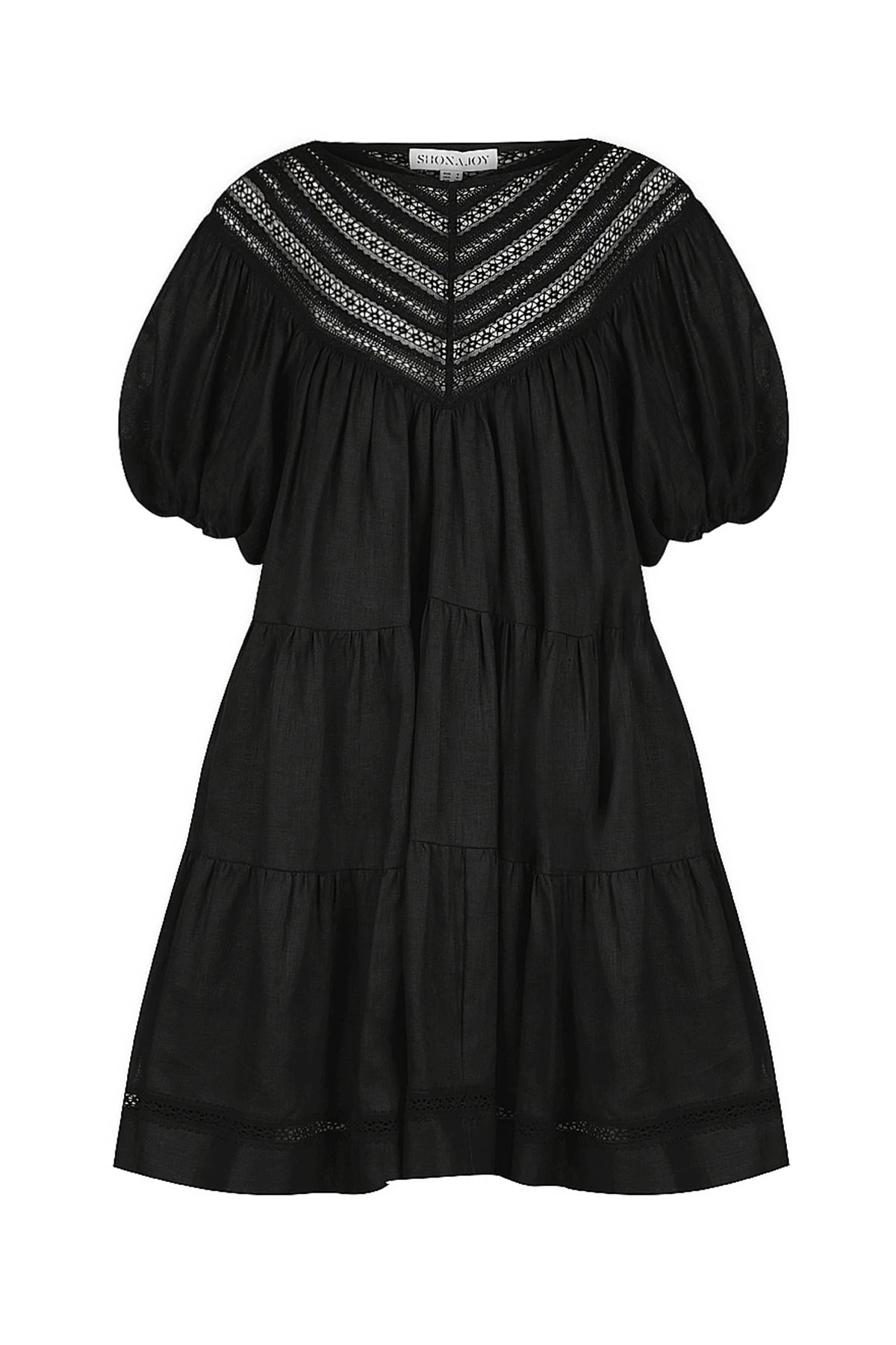 Shona Joy ADRIANA LINEN SHORT SLEEVE TIERED MINI DRESS – BLACK