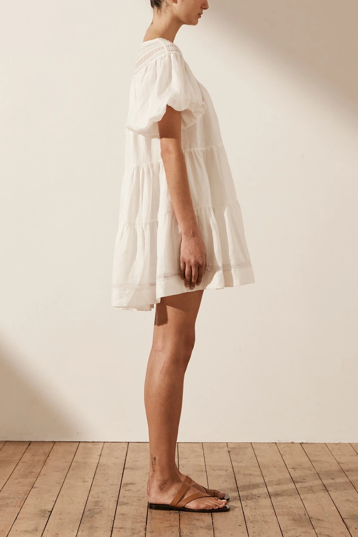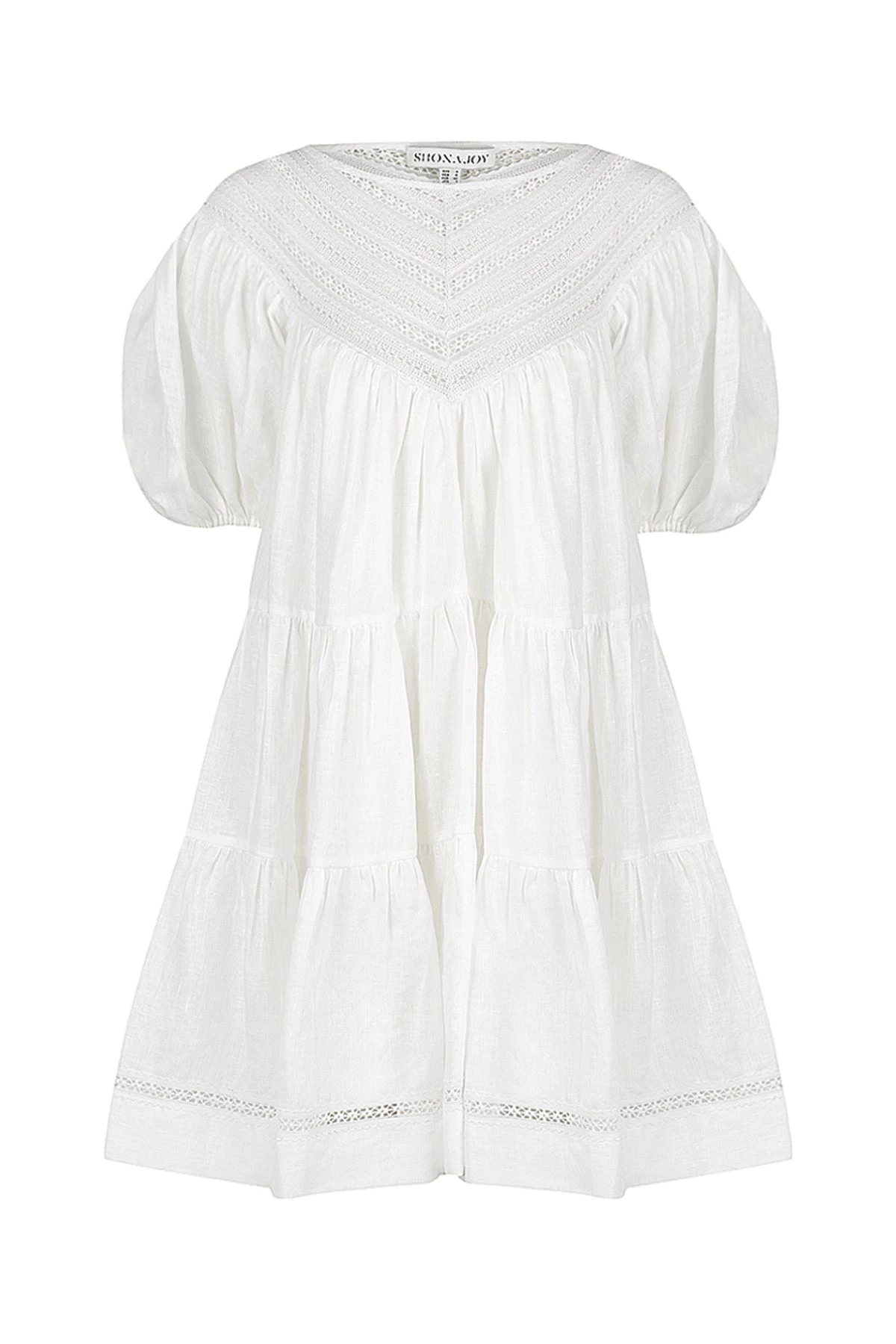 Shona Joy ADRIANA LINEN SHORT SLEEVE TIERED MINI DRESS – RICE