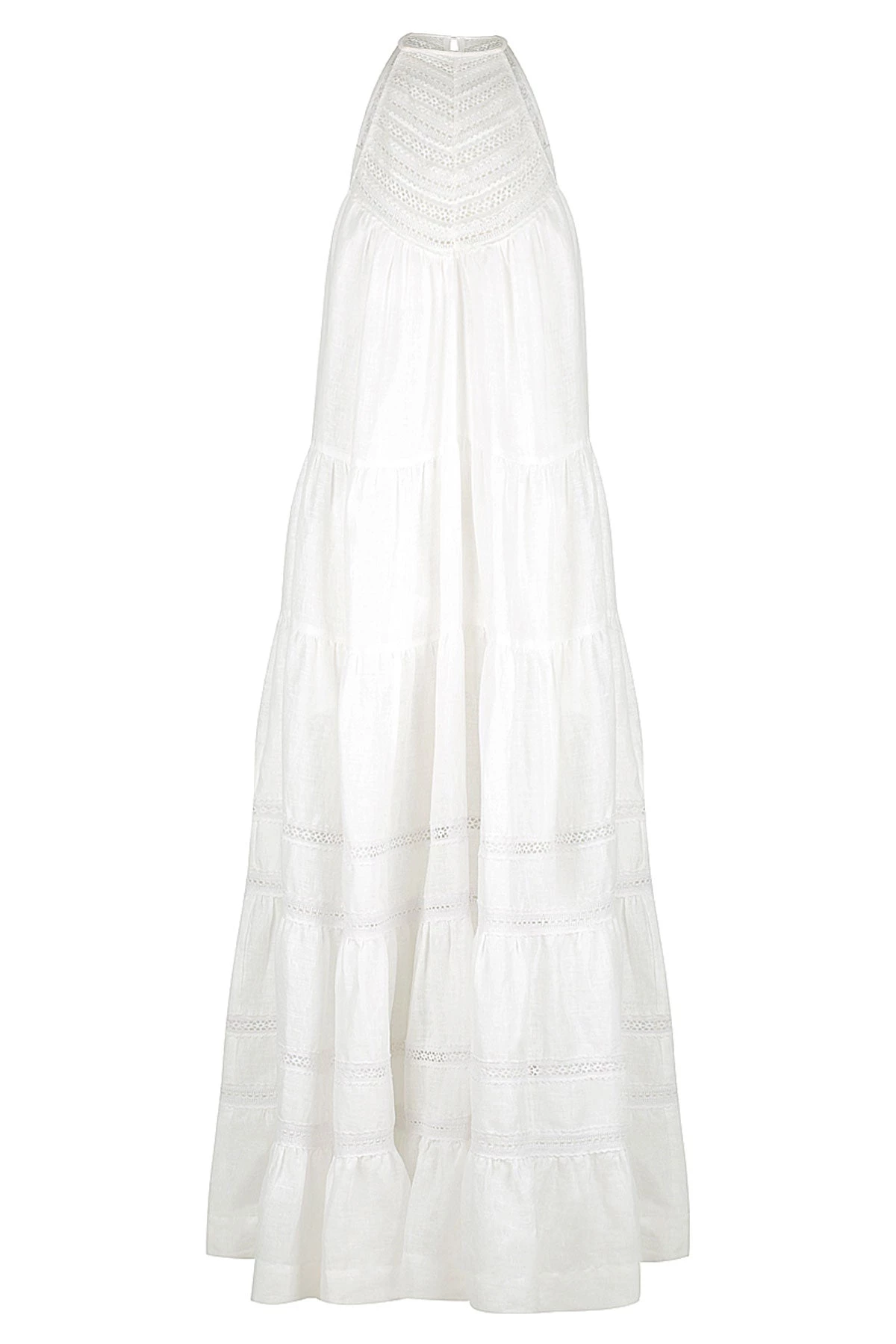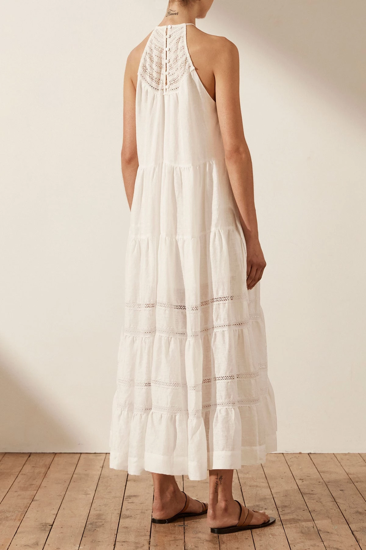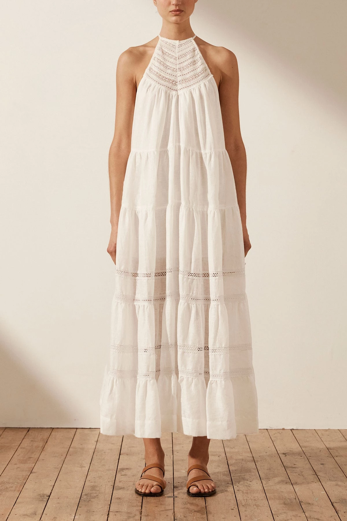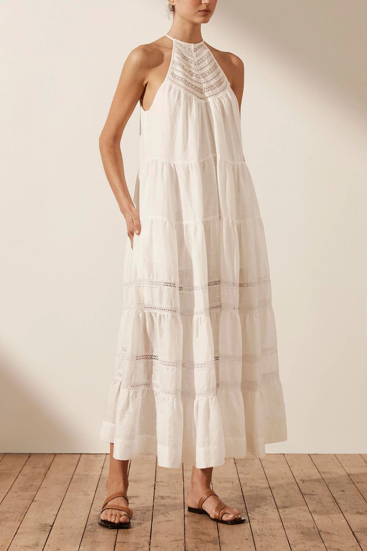 Shona Joy ADRIANA LINEN SLEEVELESS TIERED MIDI DRESS – RICE