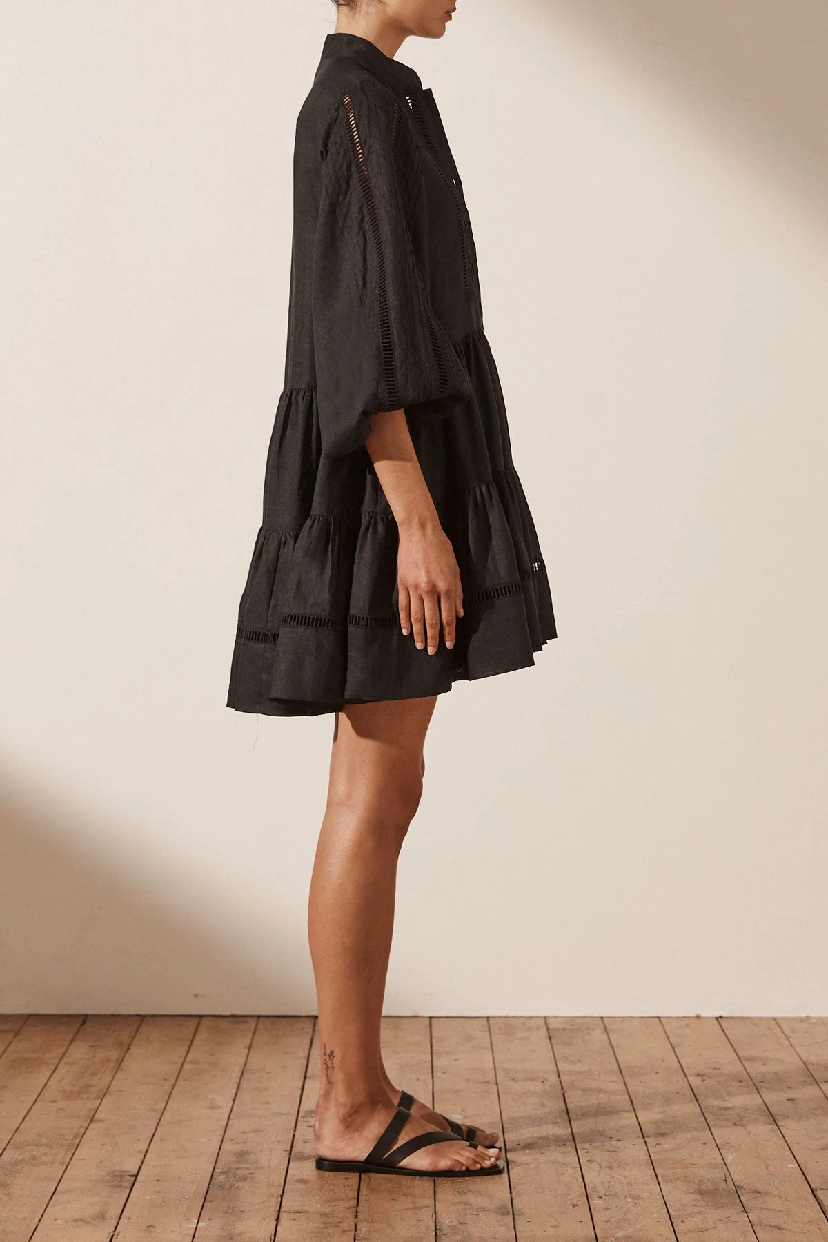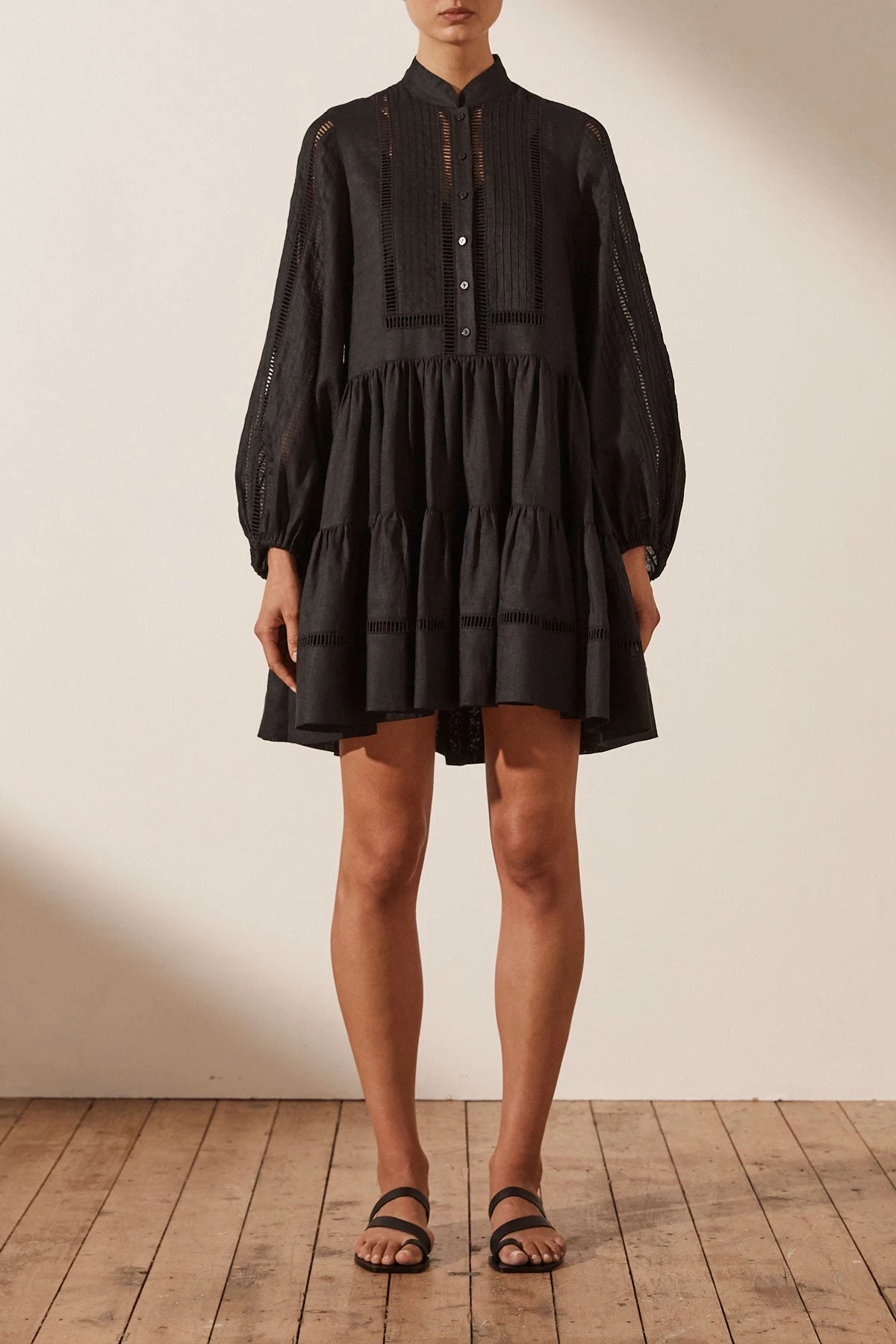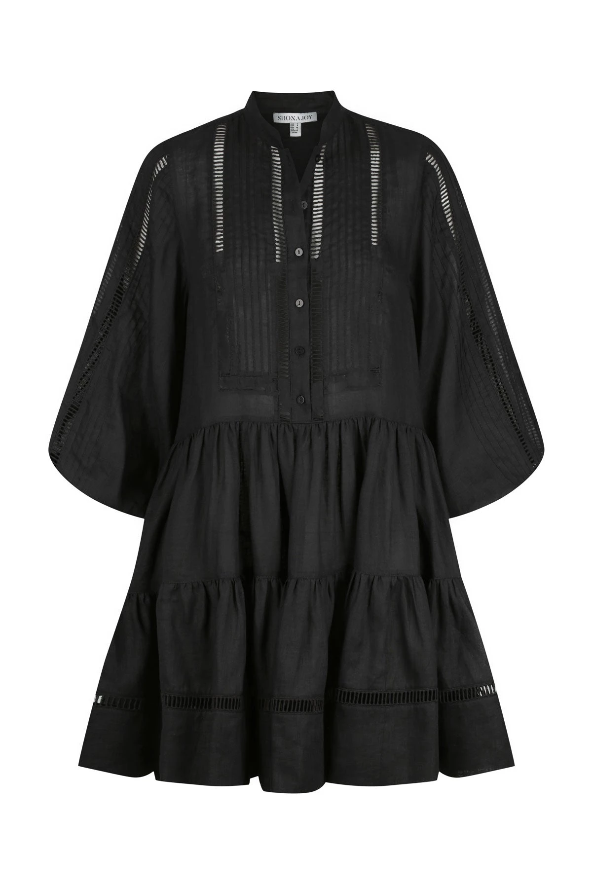 Shona Joy ARIELLA LINEN PIN TUCK TUXEDO MINI DRESS – BLACK