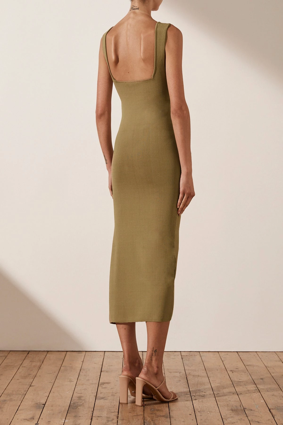 Shona Joy BASIC SQUARE NECK MIDI DRESS – BAY LEAF DRESSES