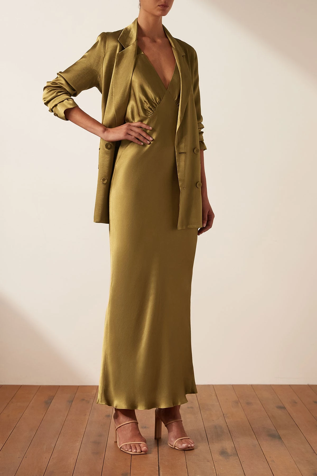 Shona Joy BEST SELLERS GIORGIA PLUNGED MIDI DRESS – OLIVE OIL
