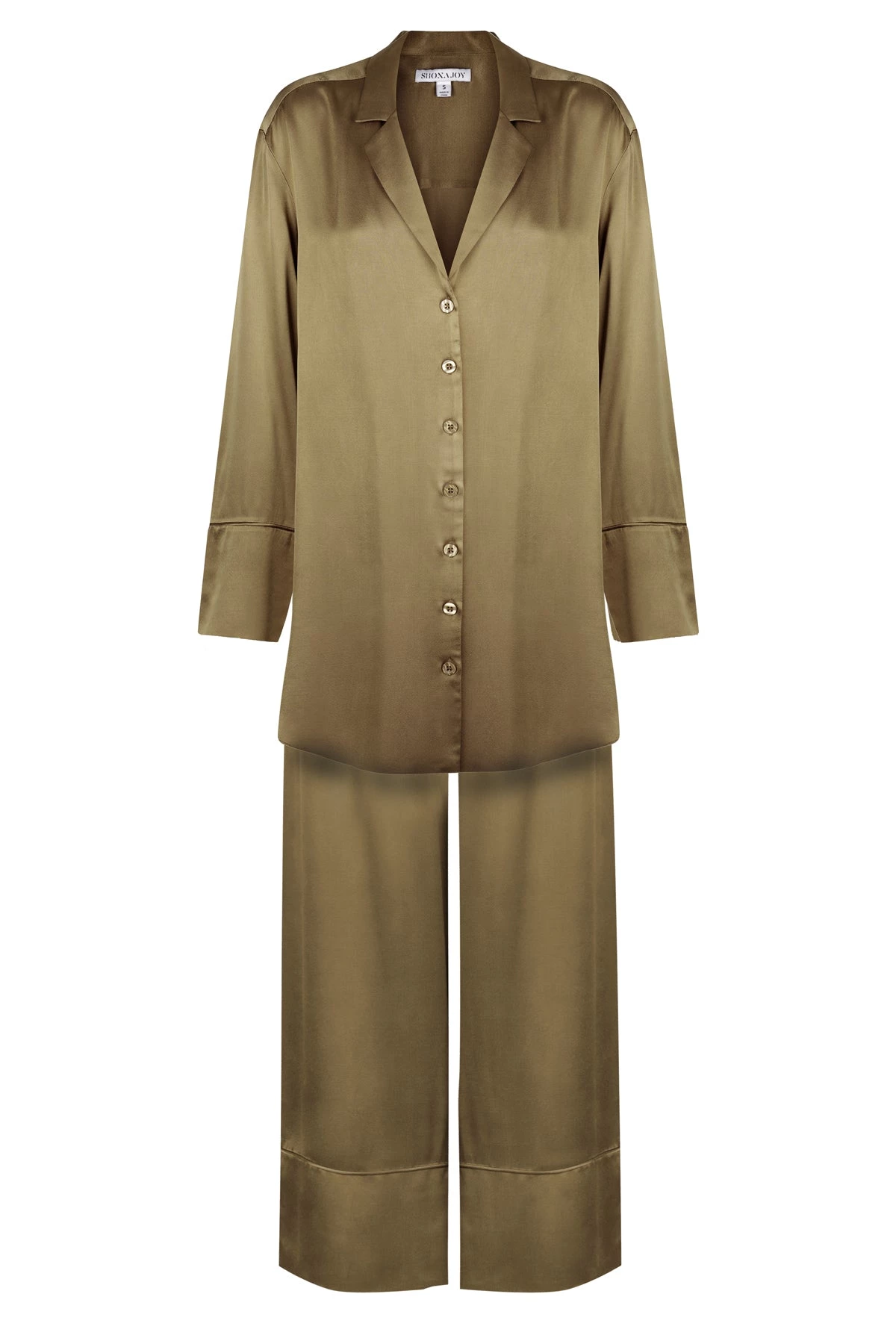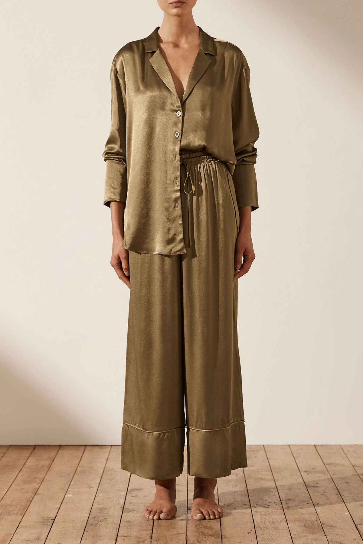Shona Joy BRIDESMAIDS LA LUNE LOUNGE LONG SLEEVE SHIRT SET- WARM OLIVE