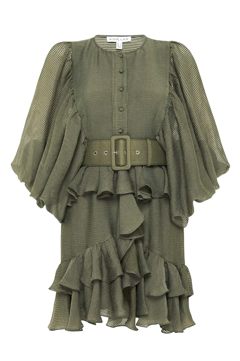 Shona Joy CHARLOTTE DRAPED MINI DRESS – KHAKI
