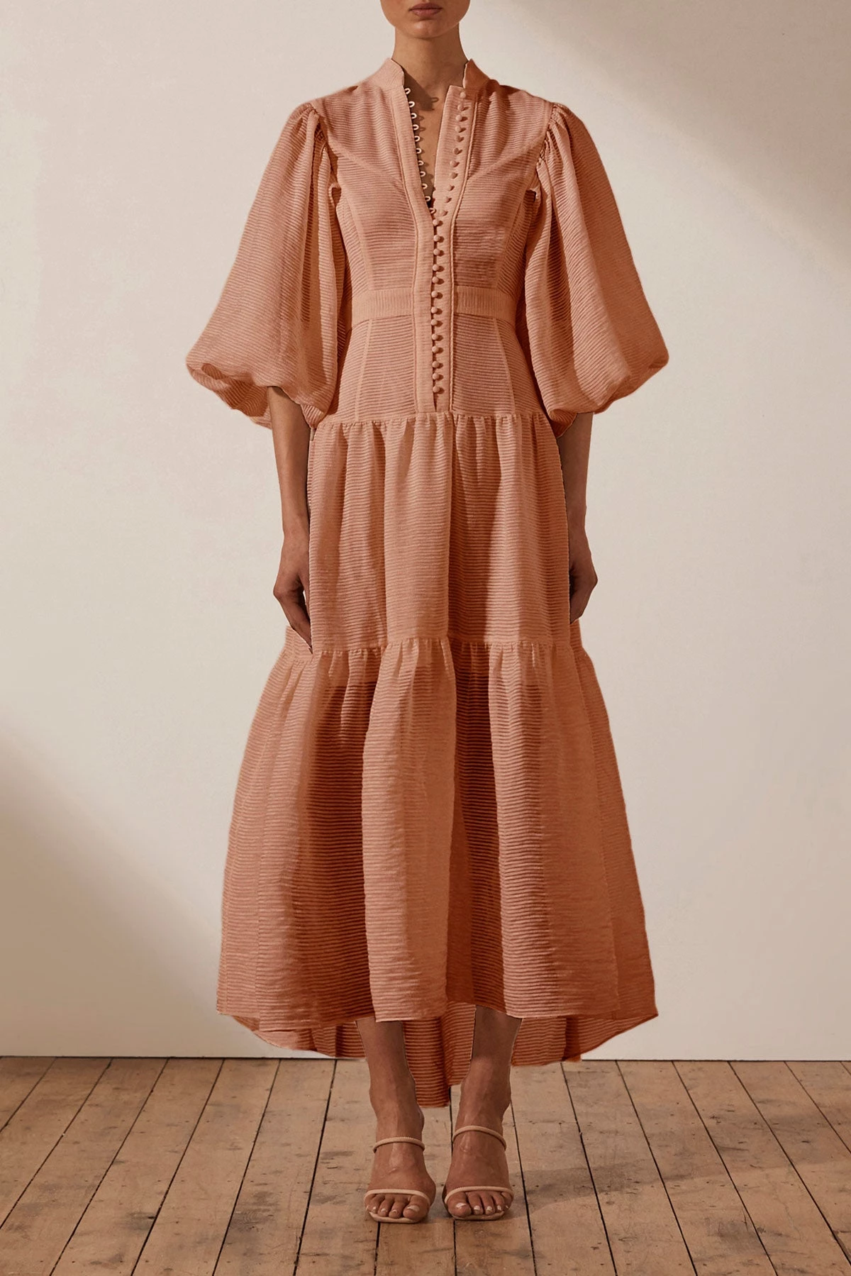 Shona Joy CHARLOTTE HIGH NECK MIDI DRESS – DESERT ROSE DRESSES