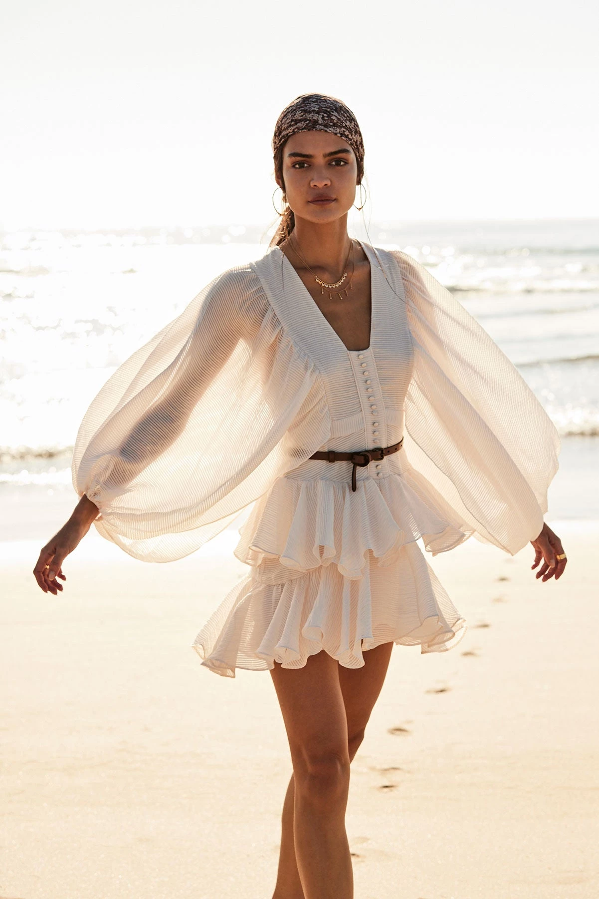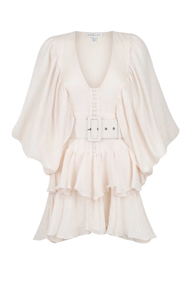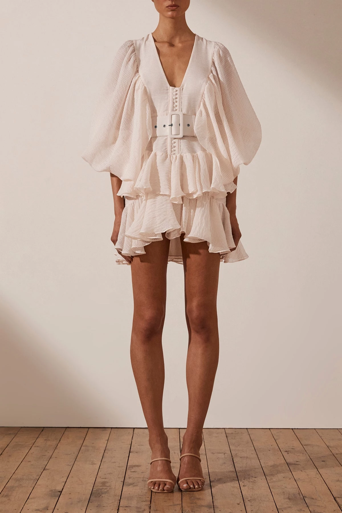 Shona Joy CHARLOTTE PLUNGED DRAPED MINI DRESS – ECRU DRESSES