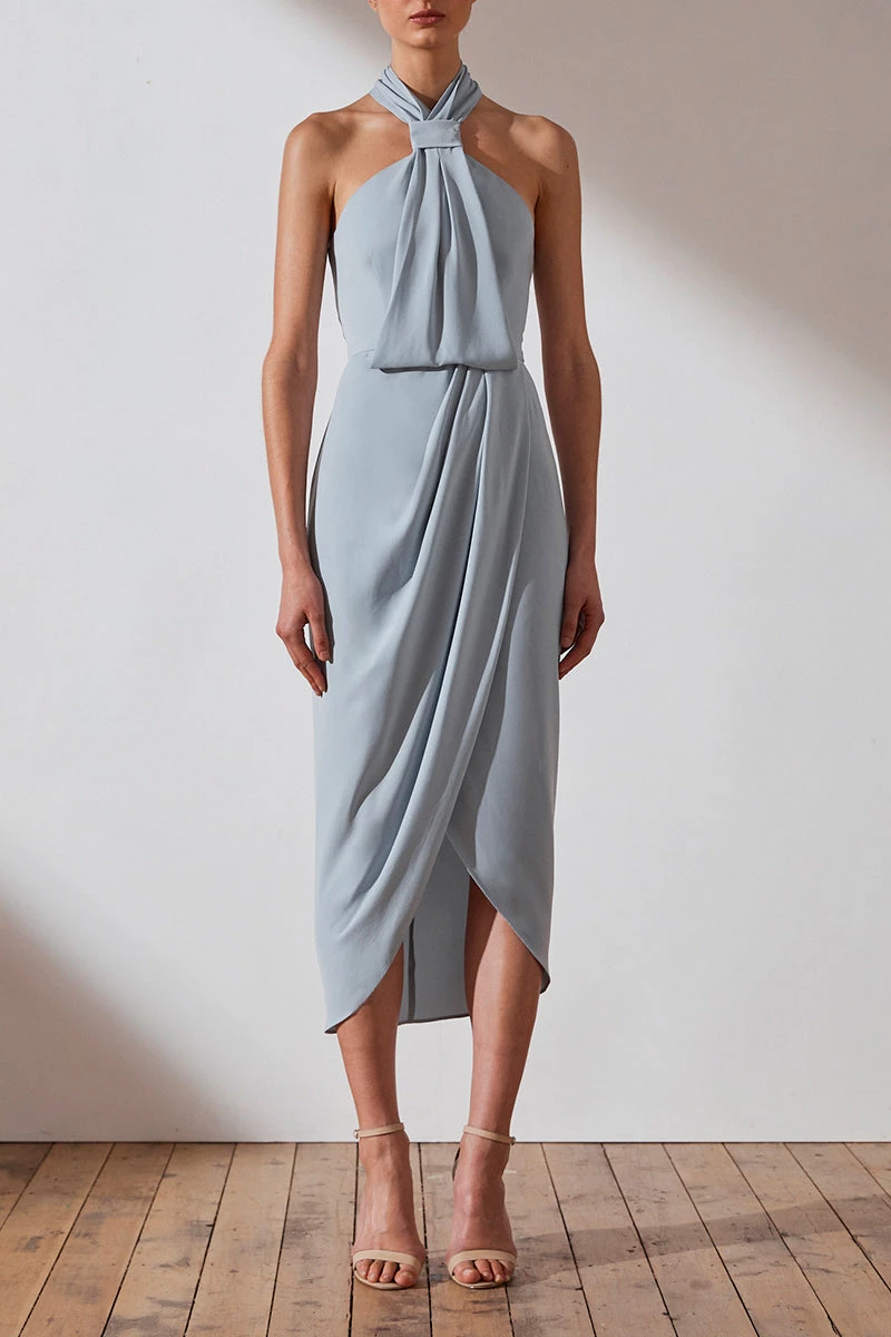 Shona Joy CORE KNOT DRAPED DRESS – POWDER BLUE