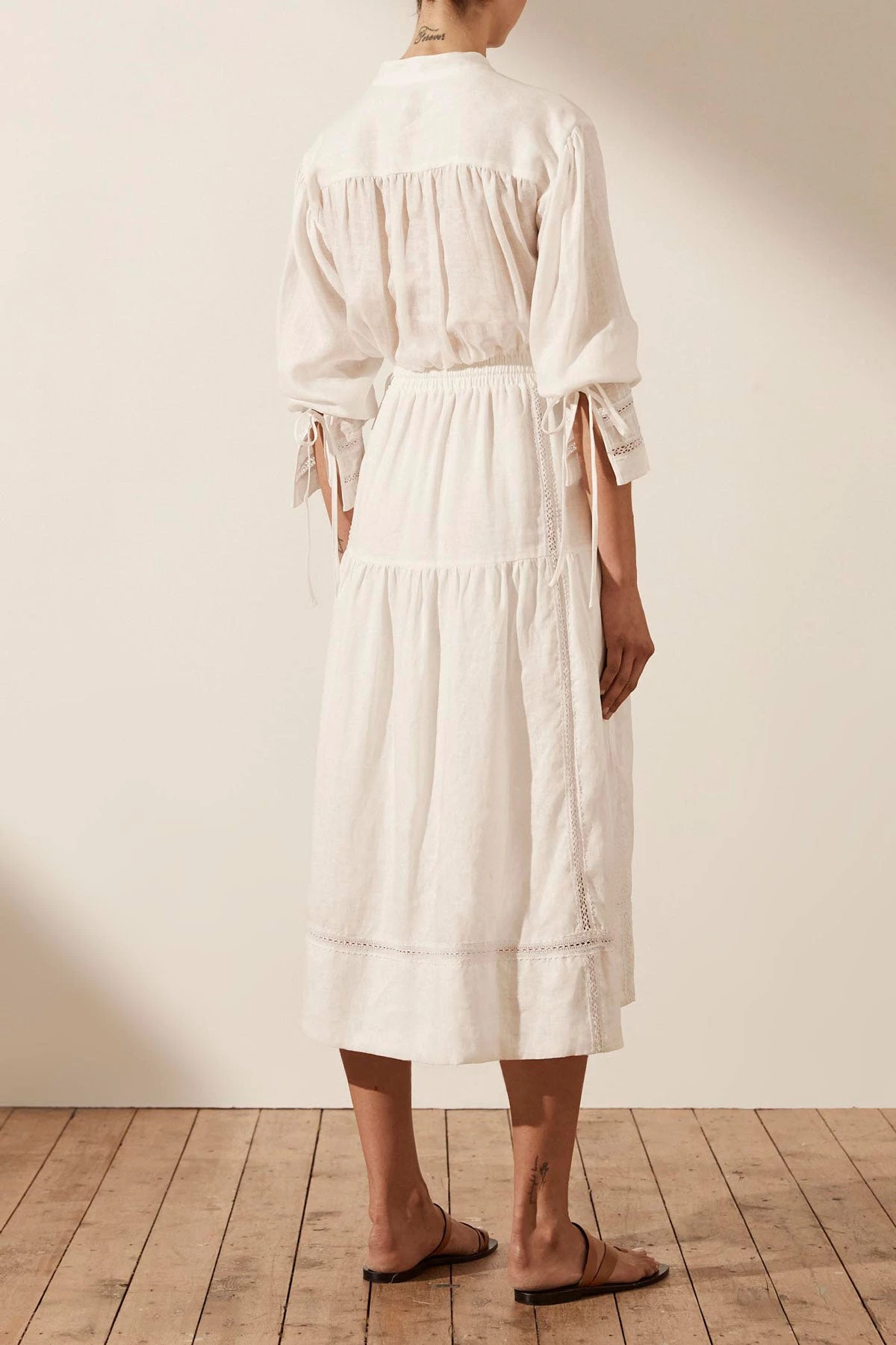 Shona Joy DRESSES ADRIANA LINEN LONG SLEEVE MIDI DRESS – RICE