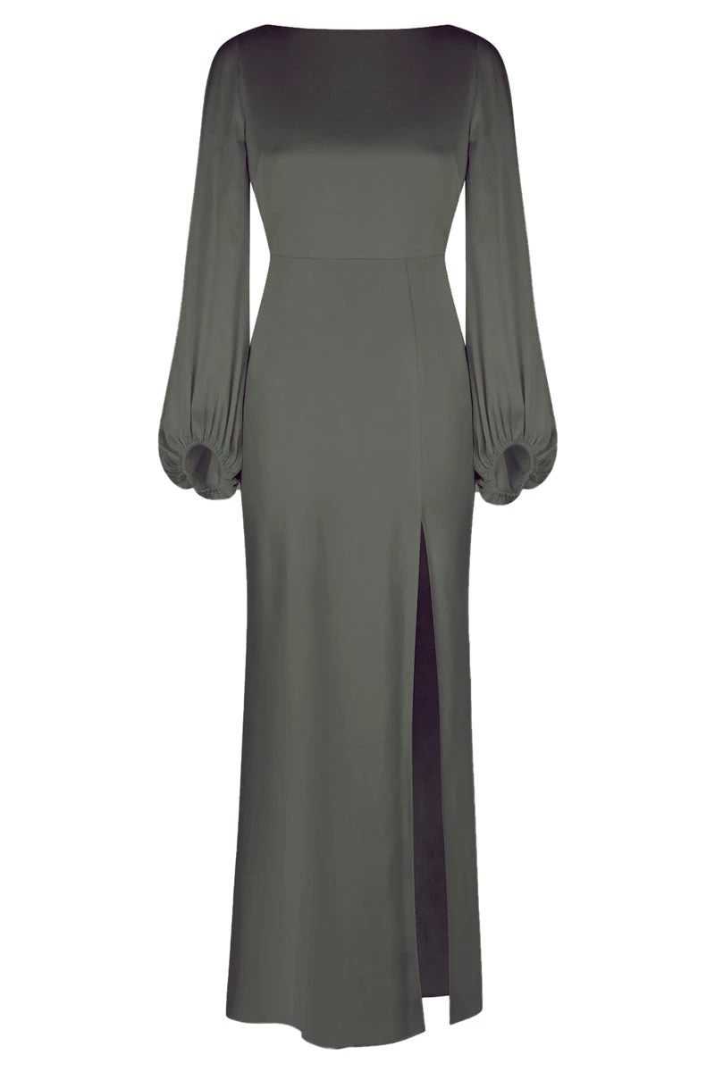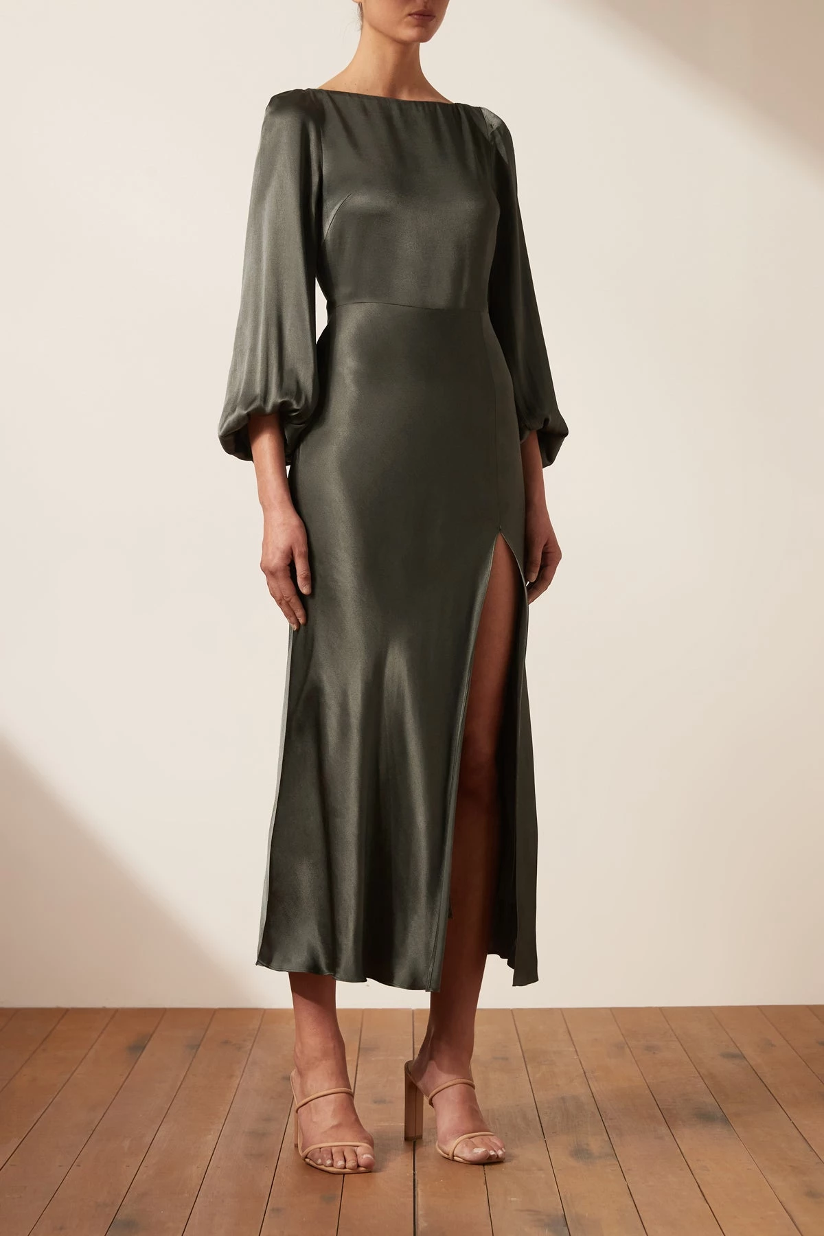 Shona Joy DRESSES LA LUNE BALLOON SLEEVE BACKLESS MIDI DRESS – OLIVE