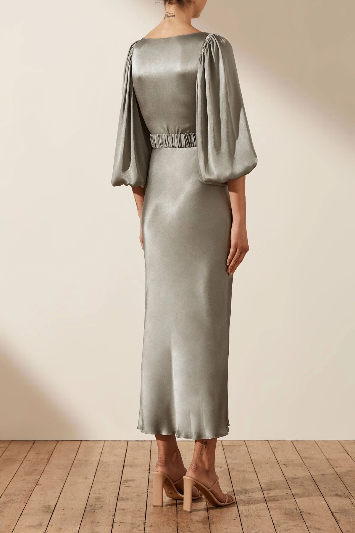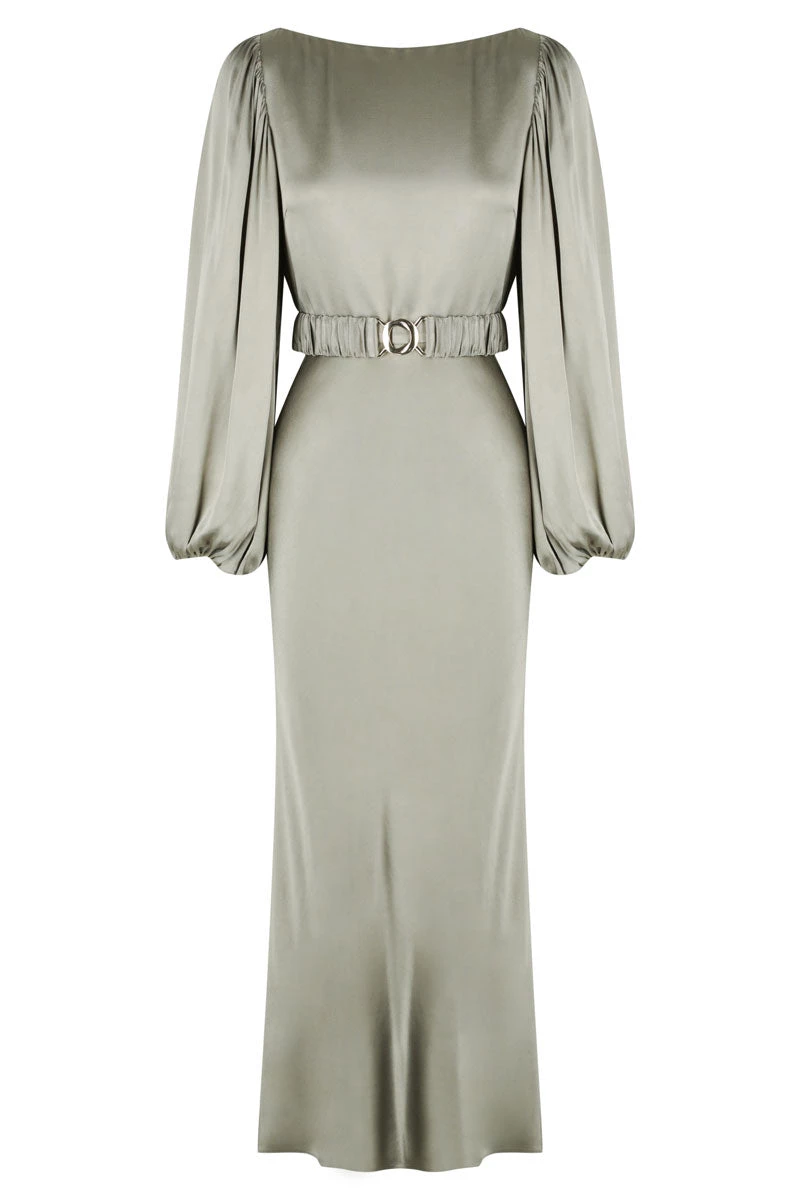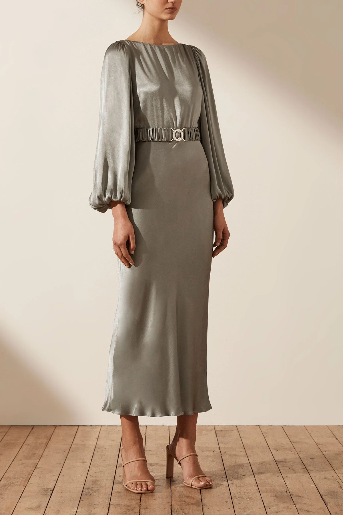 Shona Joy DRESSES LA LUNE BALLOON SLEEVE MIDI DRESS WITH BELT – SAGE