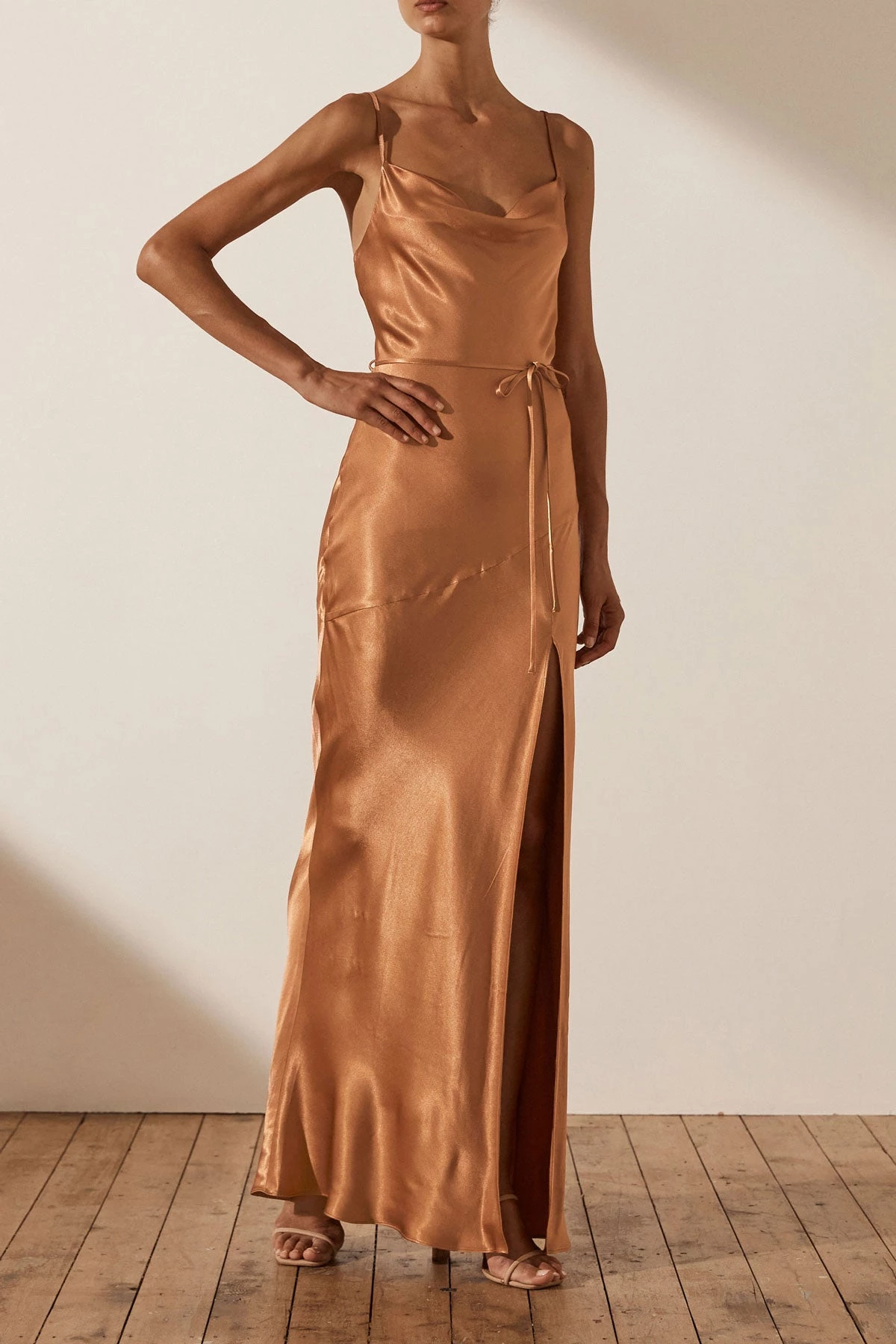 Shona Joy DRESSES LA LUNE BIAS COWL MAXI DRESS – COPPER