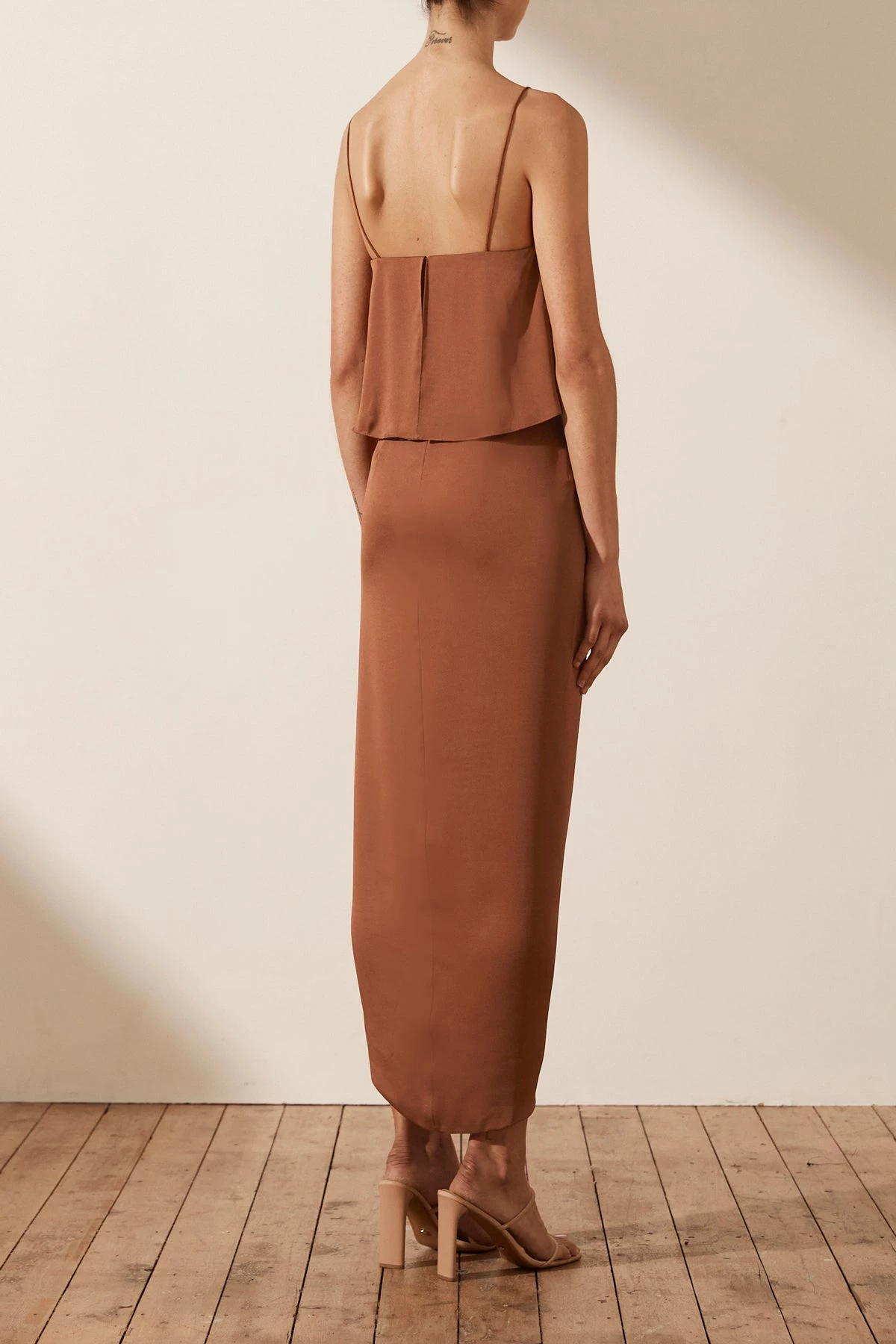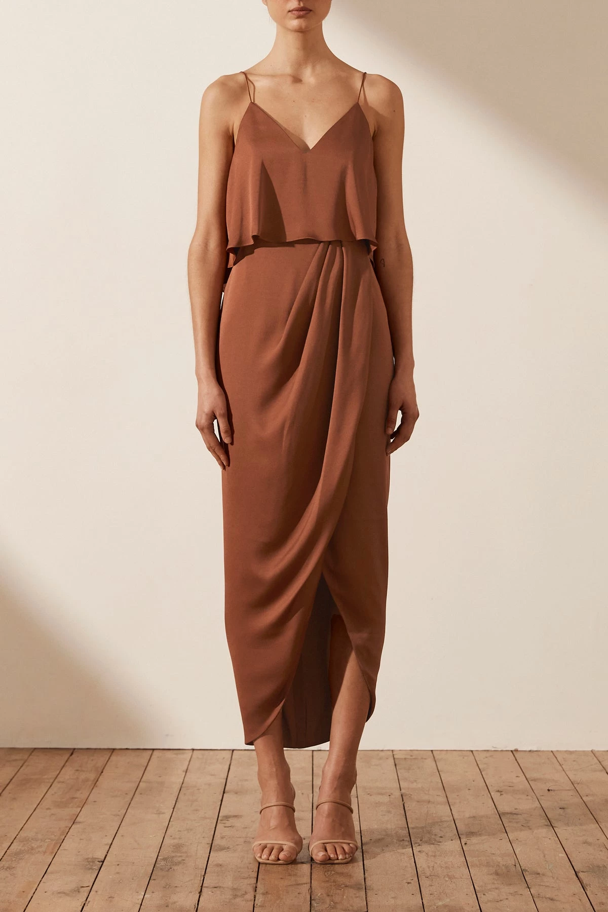 Shona Joy DRESSES LUXE COCKTAIL FRILL DRESS – MOCHA