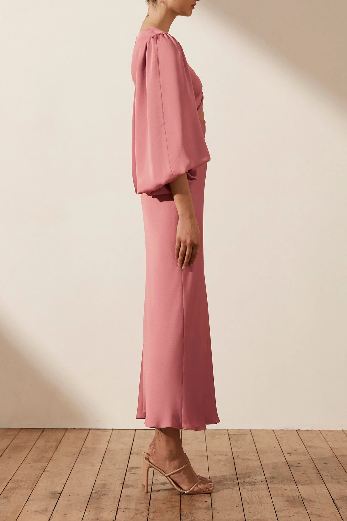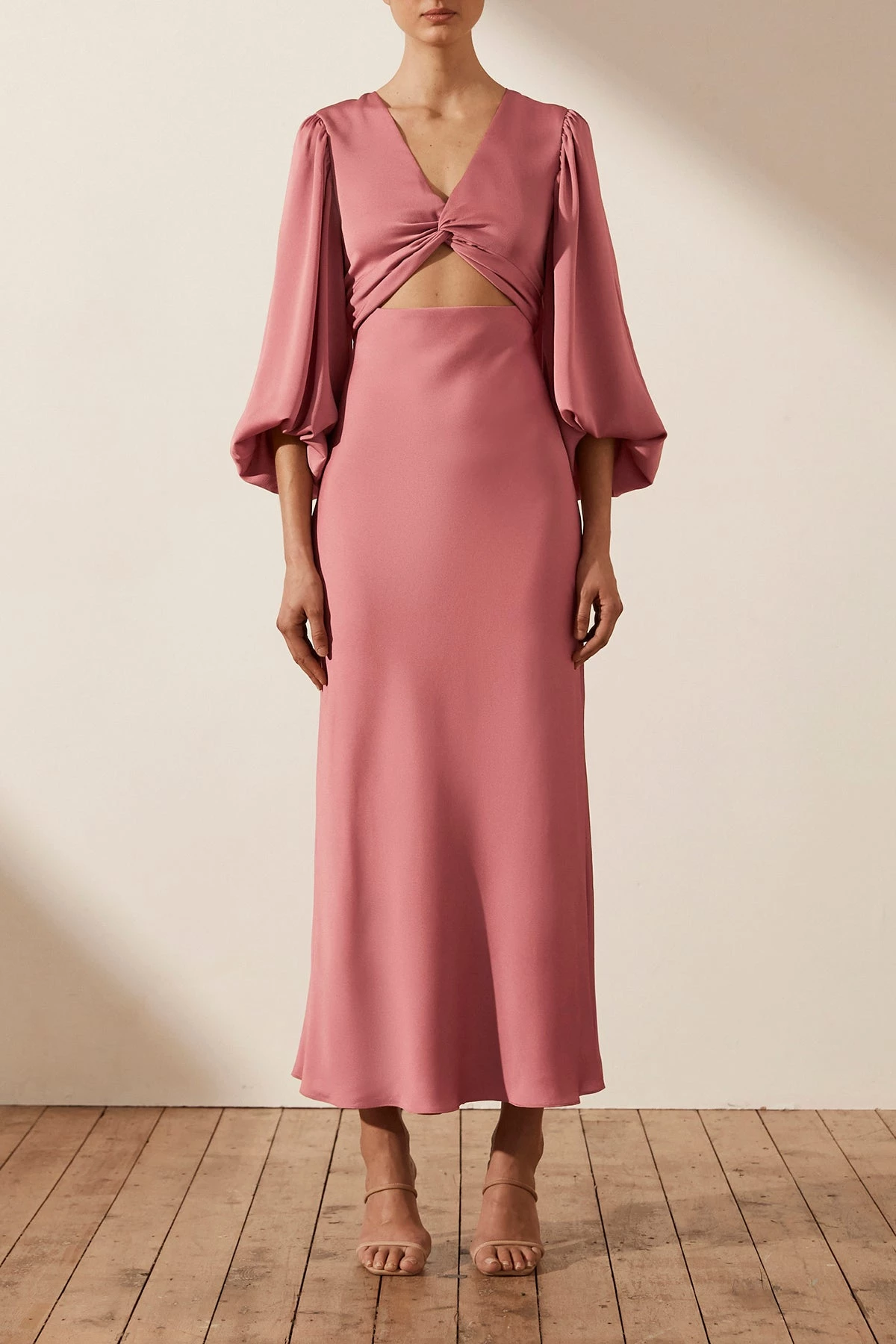 Shona Joy DRESSES LUXE TWIST FRONT BALLOON SLEEVE MIDI DRESS – ROSE