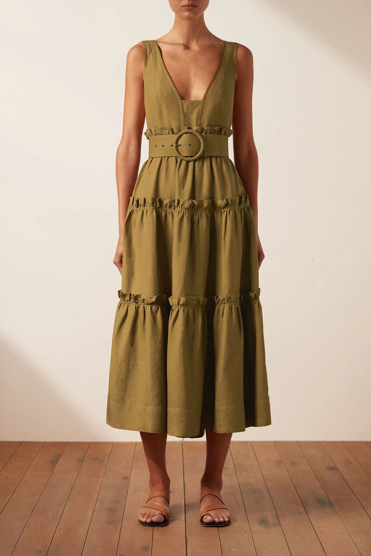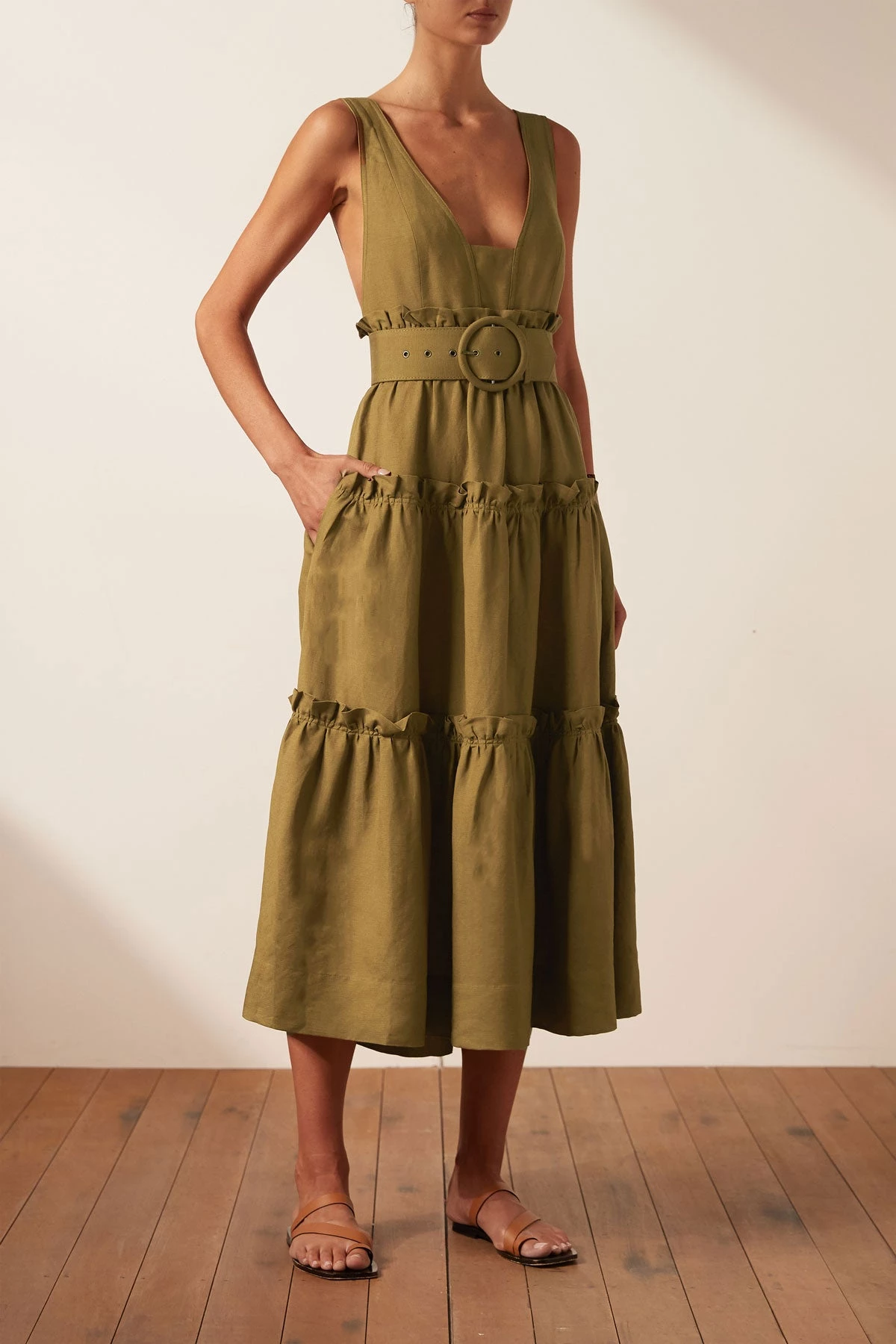 Shona Joy DRESSES RUBI LINEN TIERED MIDI DRESS – CUMIN