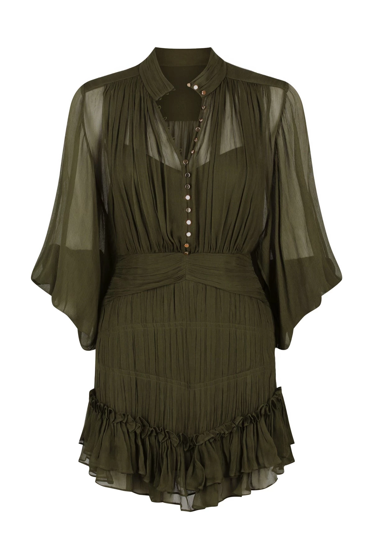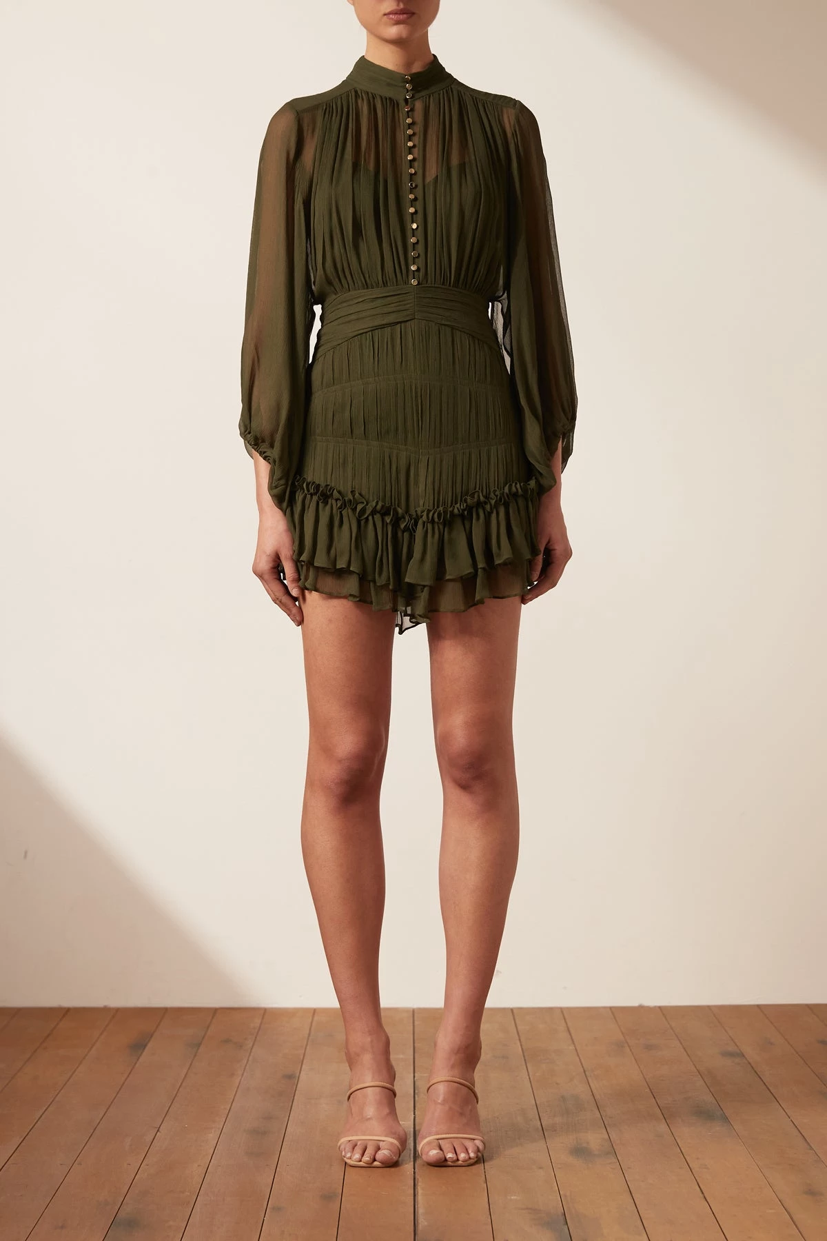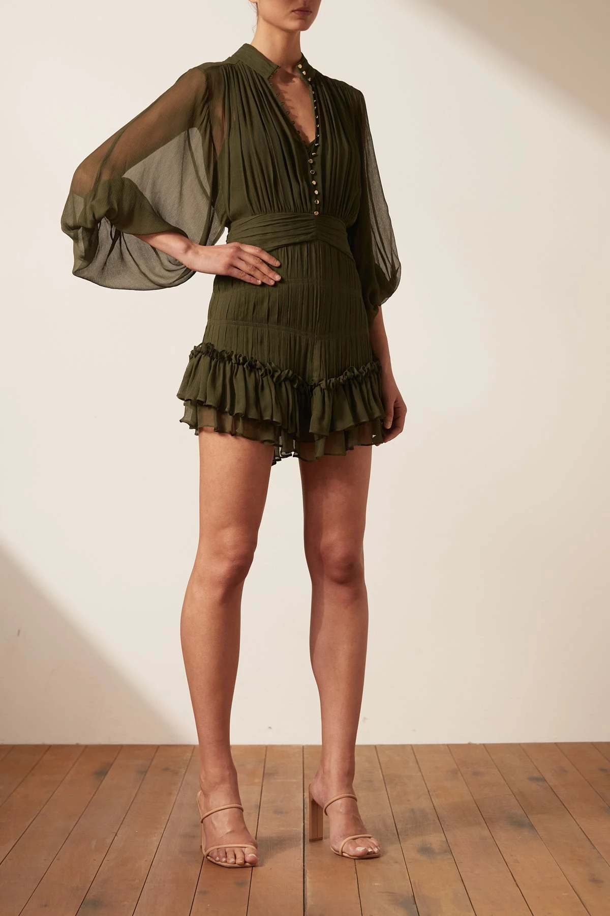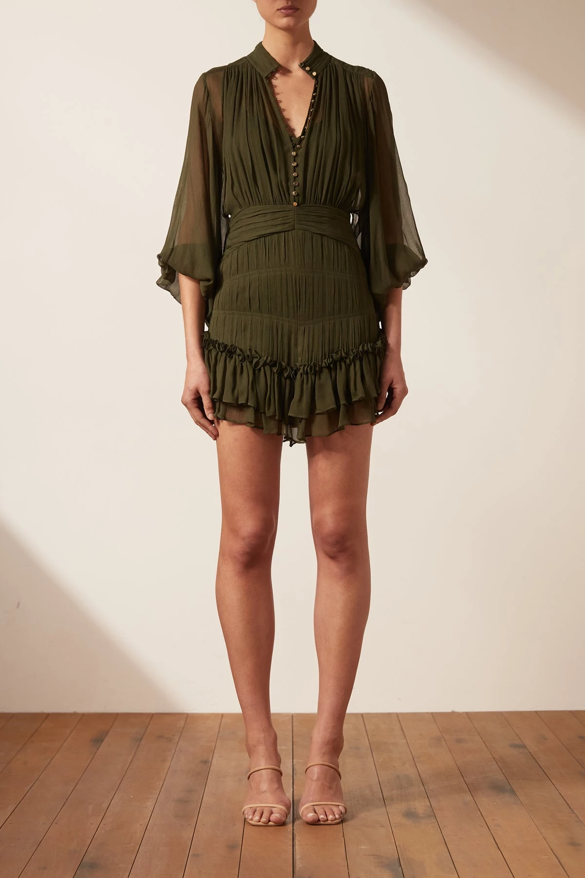 Shona Joy DRESSES SAFIRA BUTTON UP RUCHED MINI DRESS – OLIVE