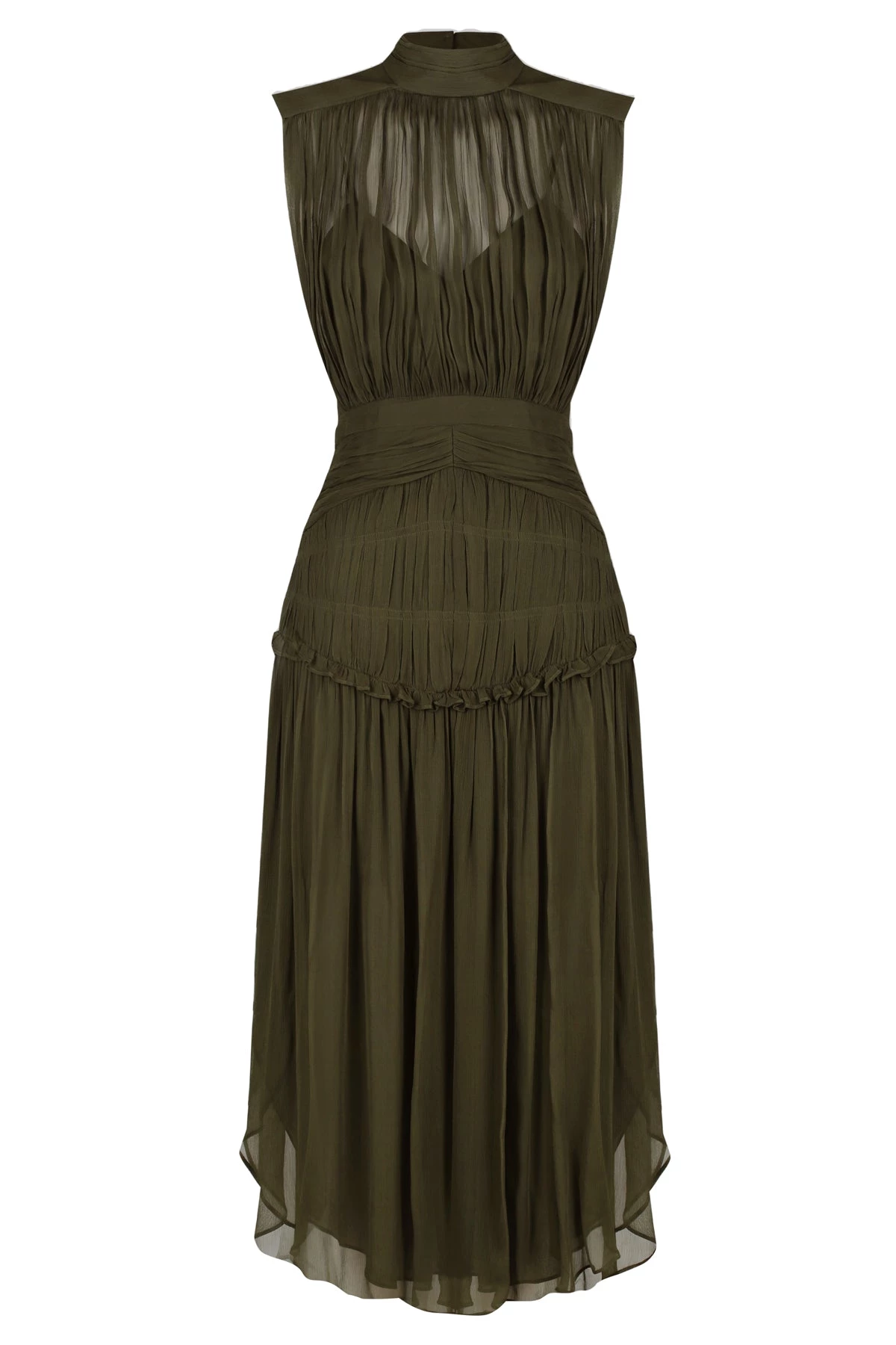 Shona Joy DRESSES SAFIRA SLEEVELESS OPEN BACK MIDI DRESS – OLIVE