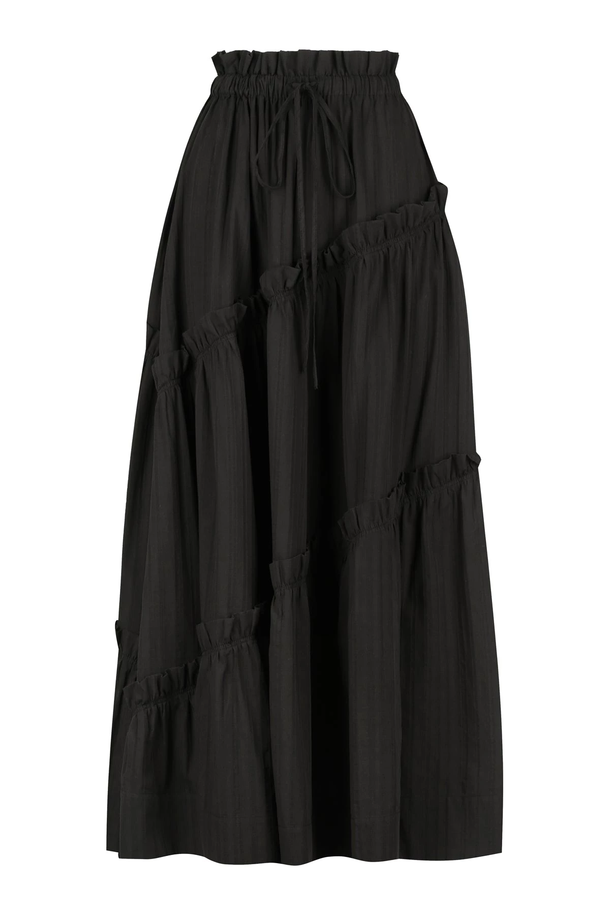 Midi skirt with asymmetrical frill detail in self stripe cotton.