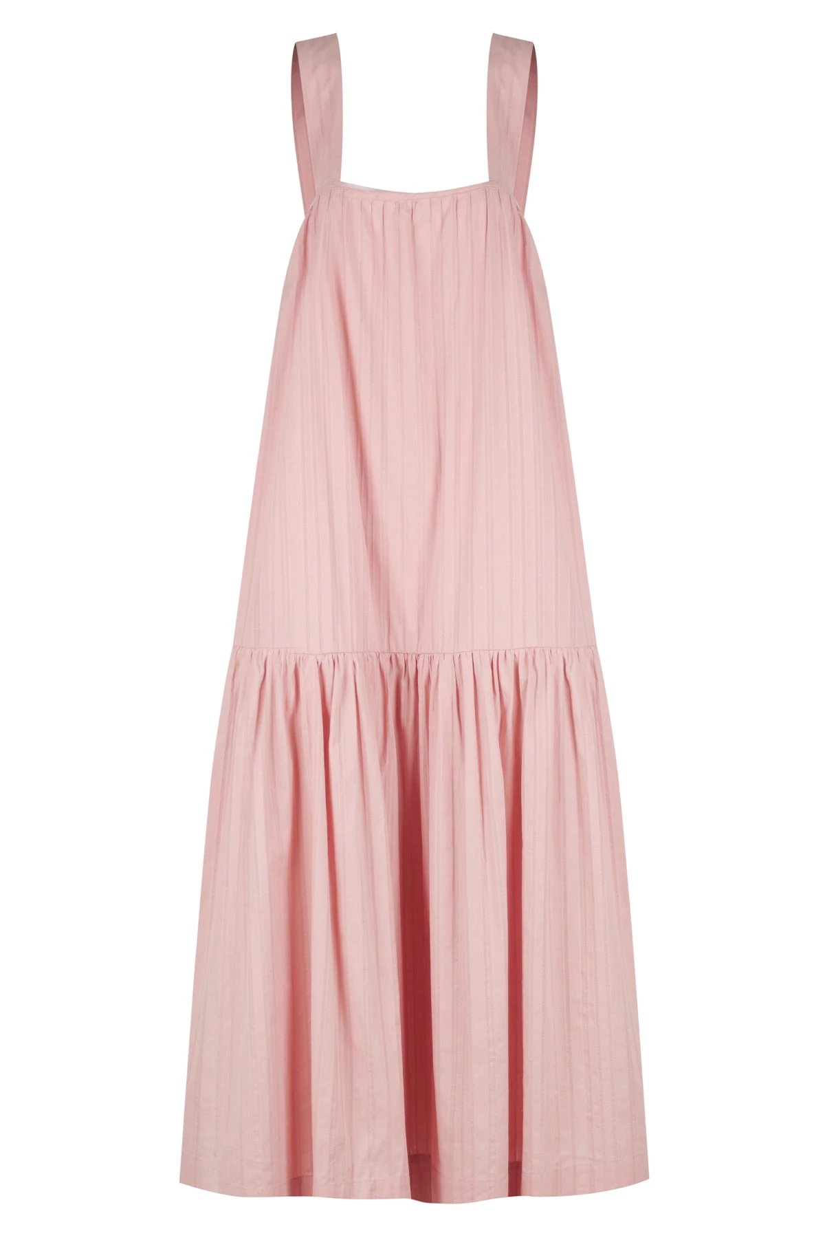 Low back midi dress with interchangeable straps in a self stripe cotton.