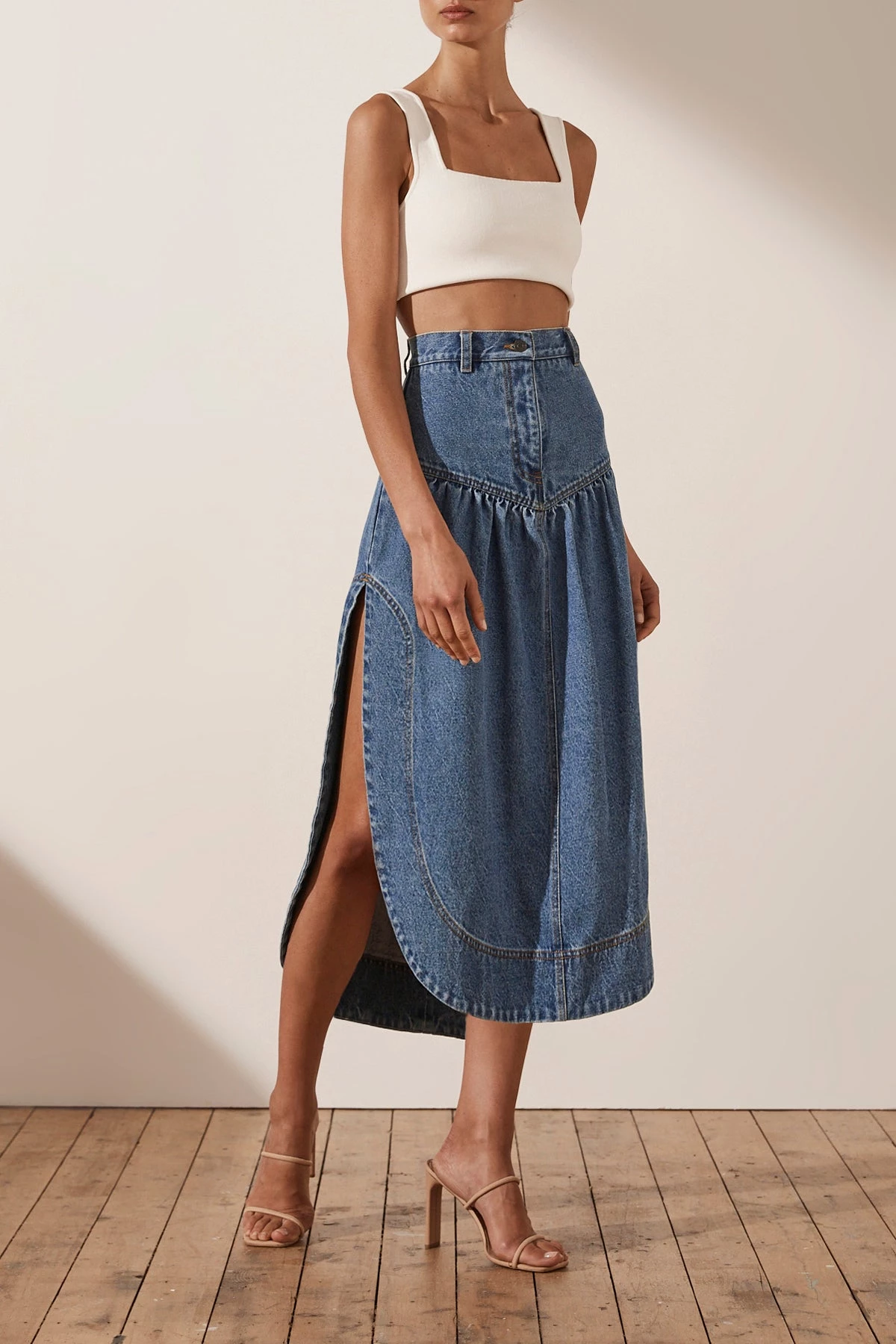 Shona Joy EMILY PETAL MIDI SKIRT INDIGO