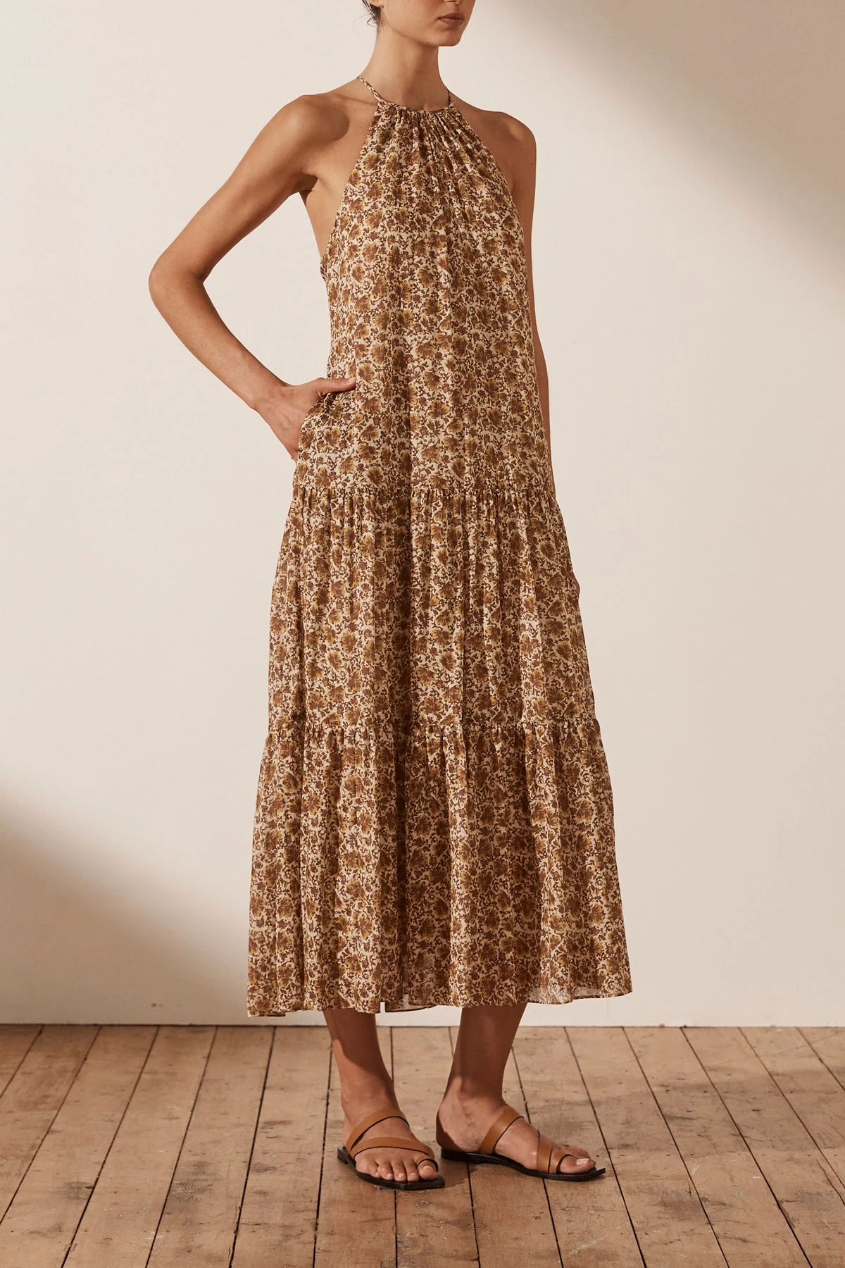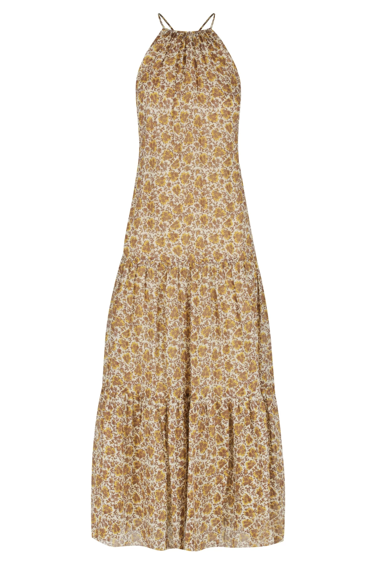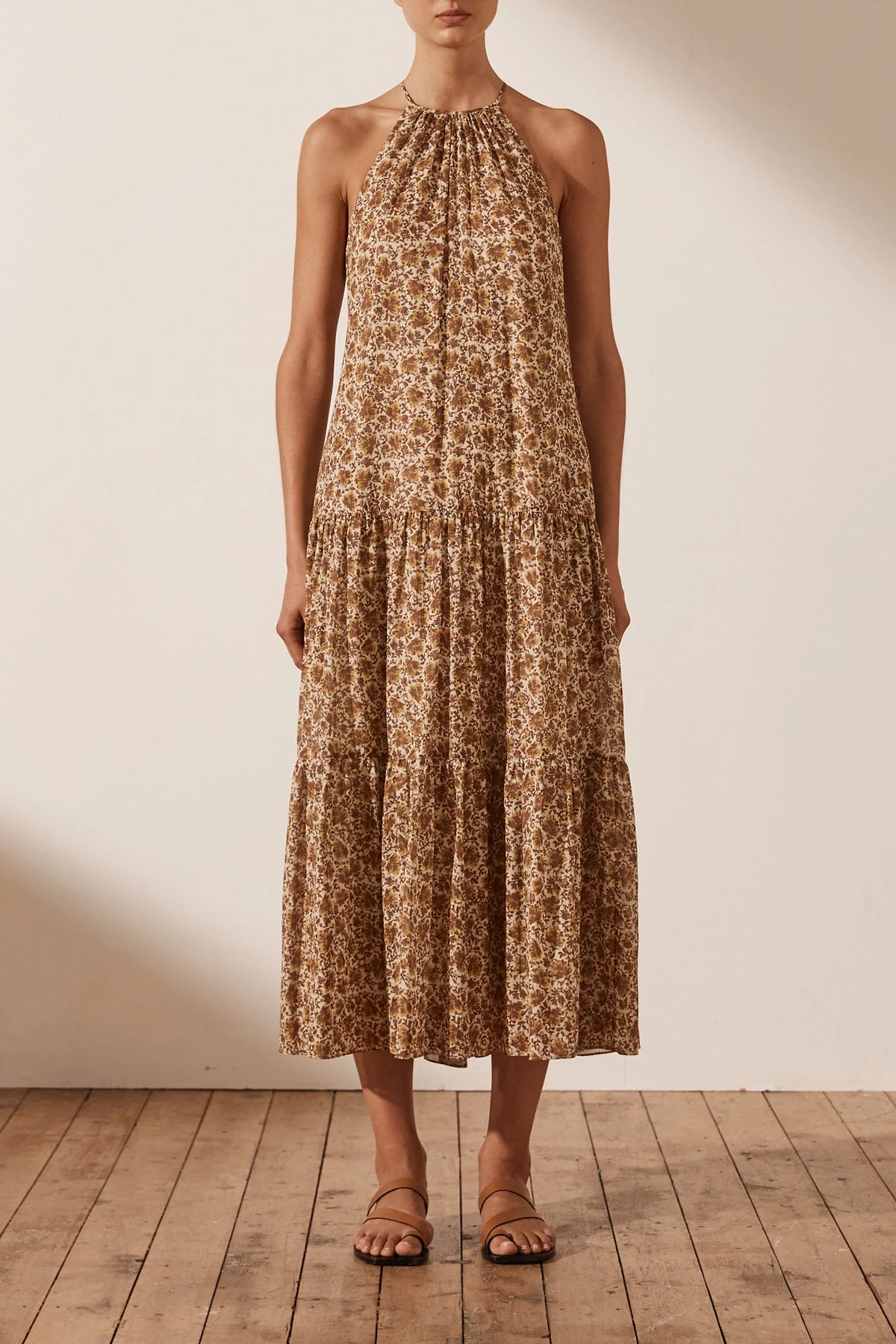 Halter midi dress in the exclusive Fauna print.