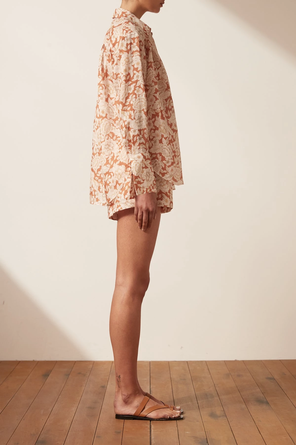 Linen shorts with elasticated waist band in the exclusive Flor print.