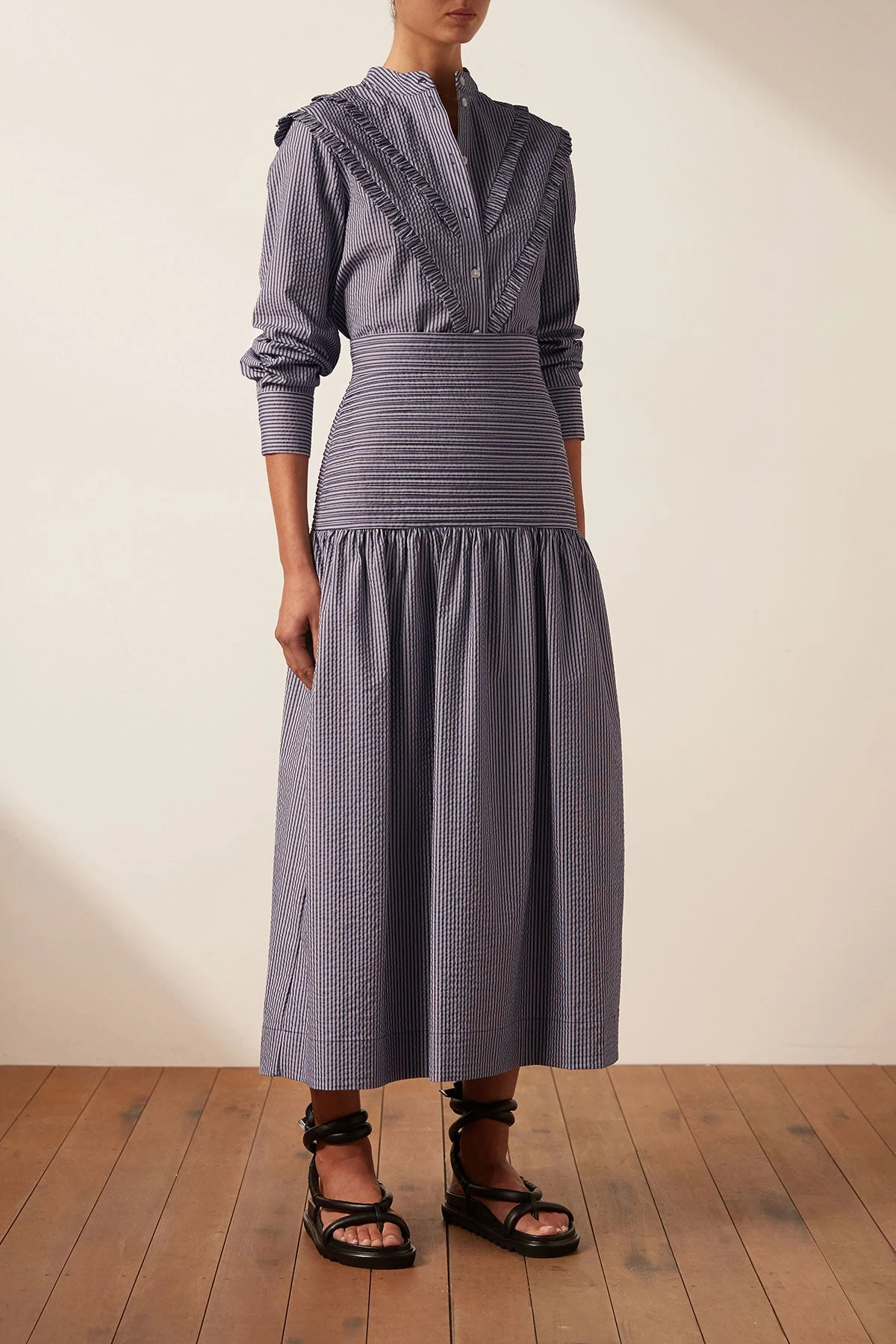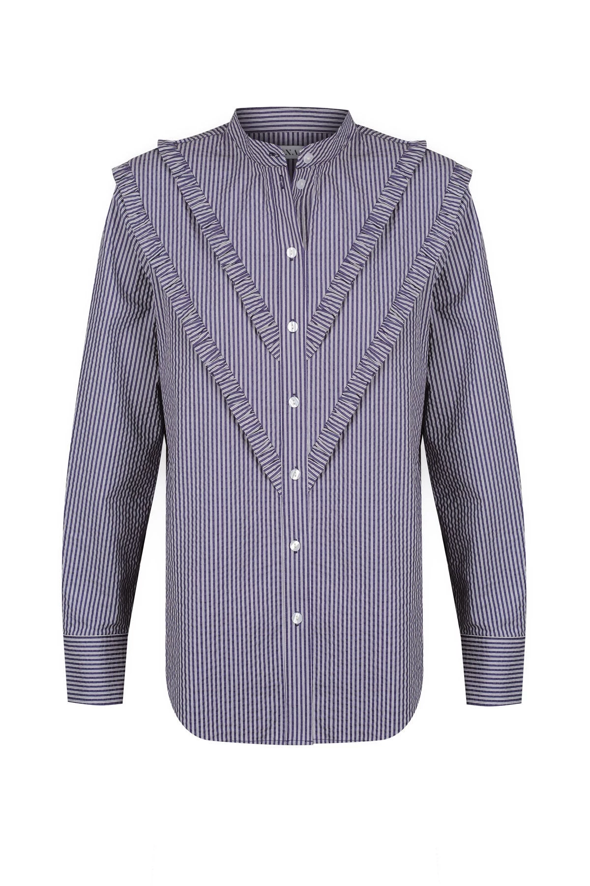Shirt with chevron frill detail in a premium textured cotton blend.