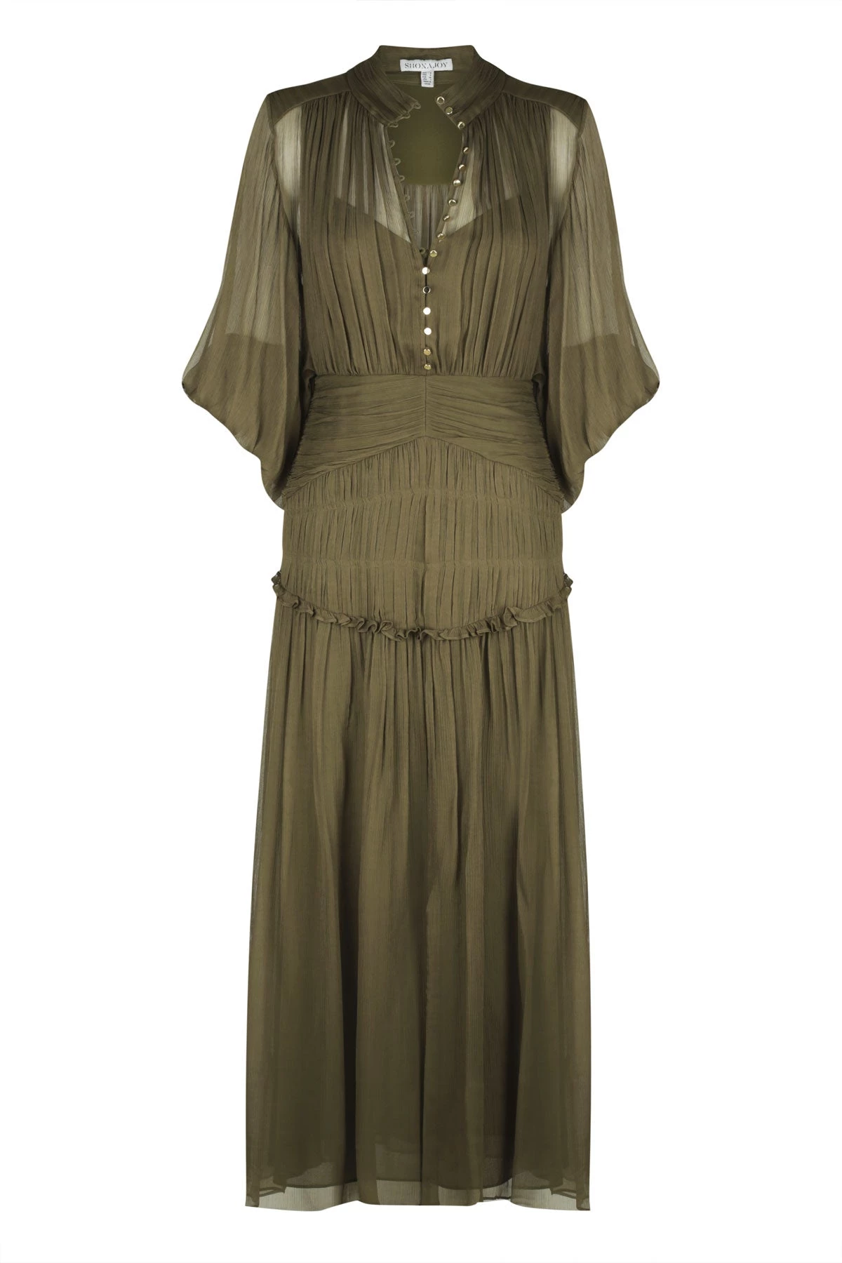 Shona Joy IRIS BUTTON UP RUCHED MIDI DRESS – CUMIN