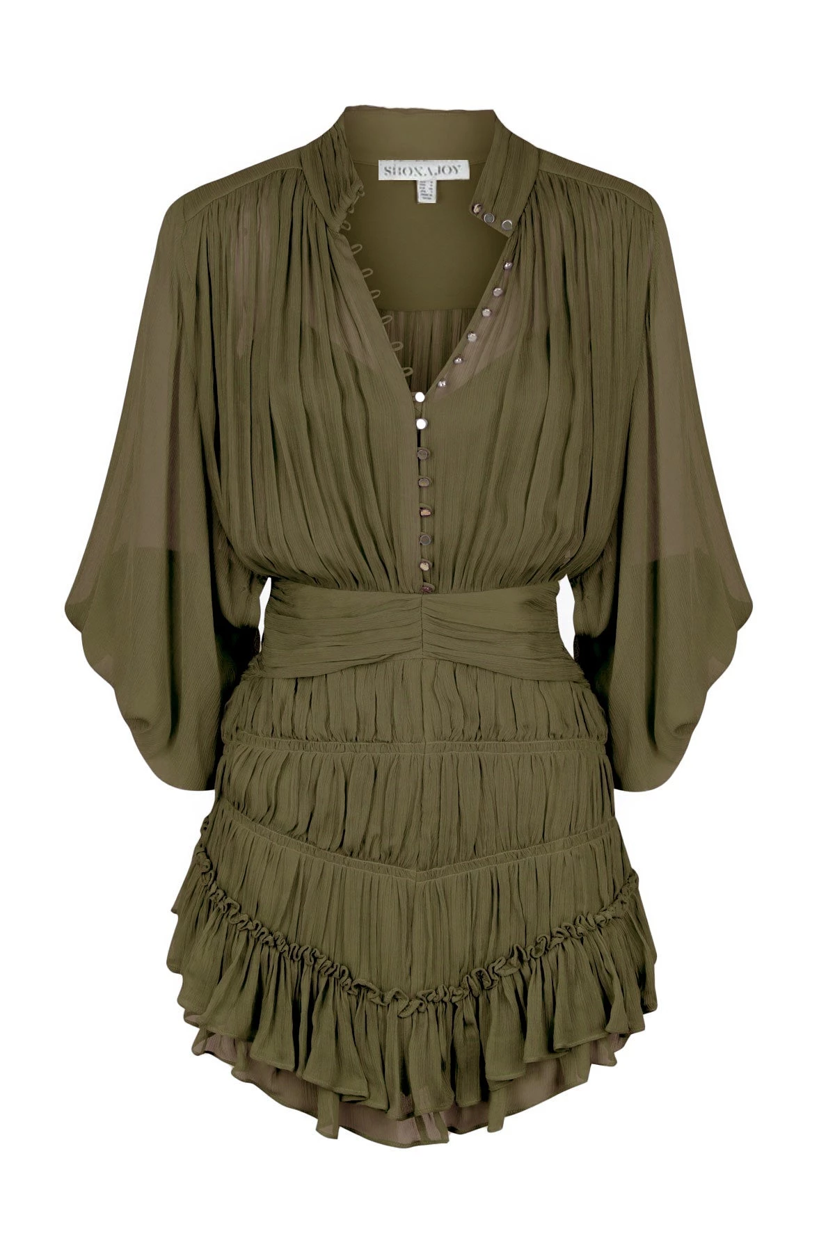 Shona Joy IRIS BUTTON UP RUCHED MINI DRESS – CUMIN