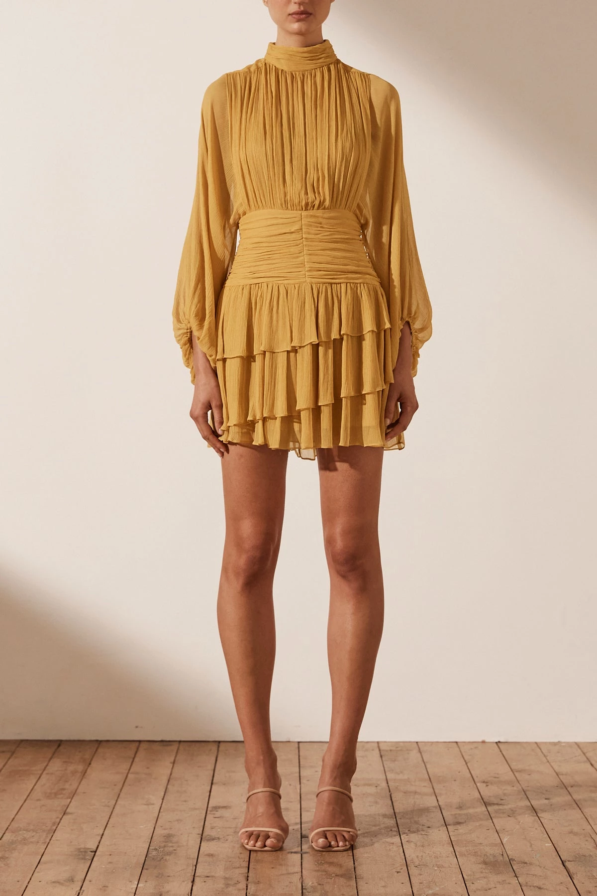 Shona Joy IRIS LONG SLEEVE RUCHED MINI DRESS – SAFFRON DRESSES