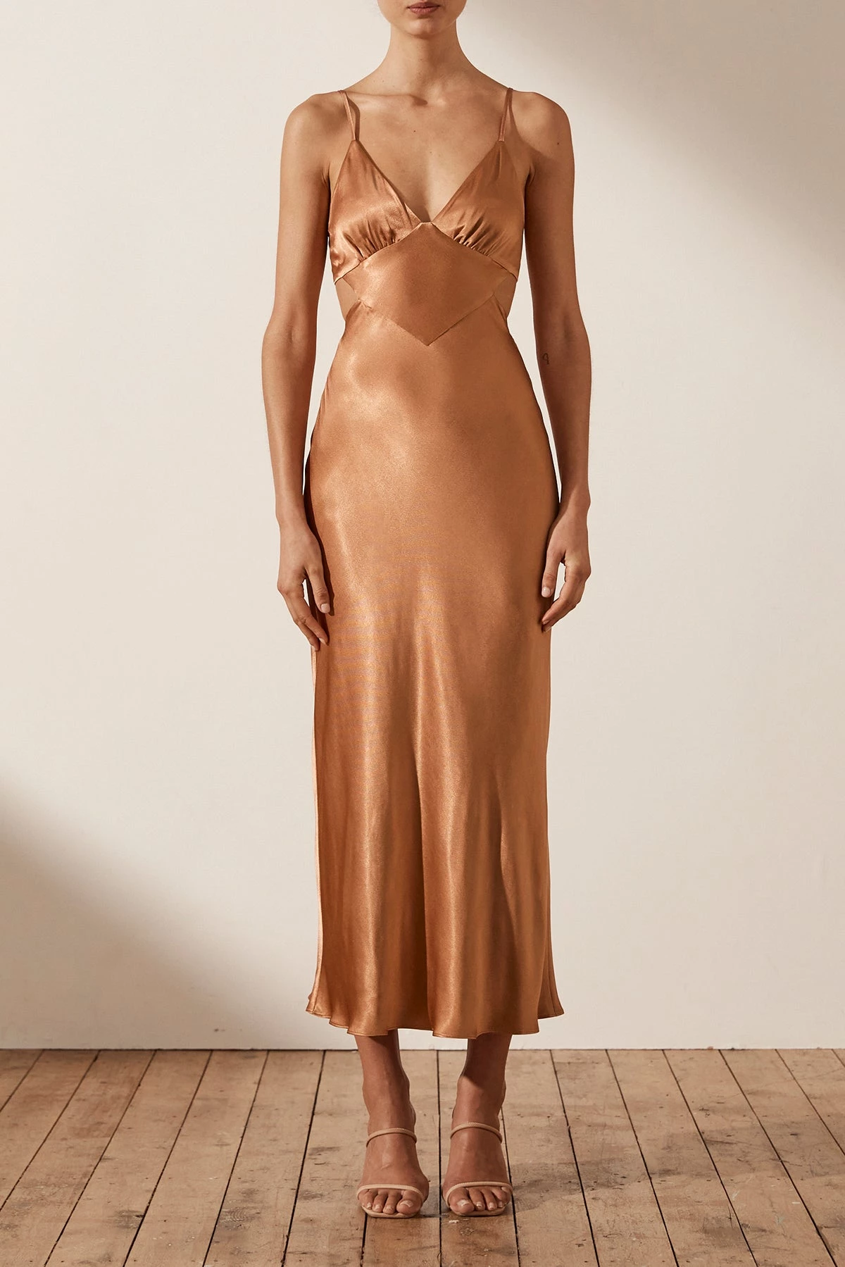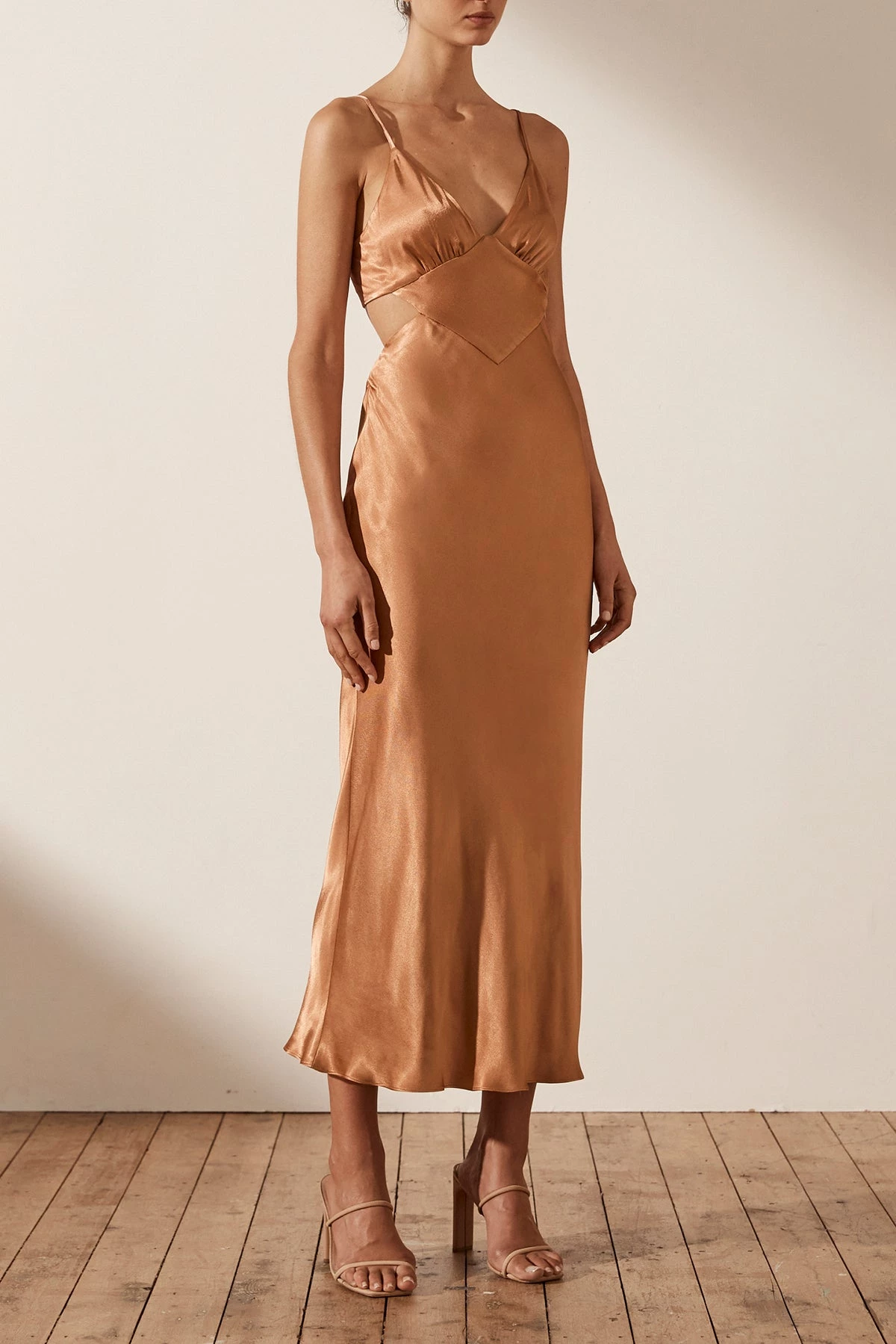 Shona Joy LA LUNE BACKLESS MIDI DRESS – COPPER