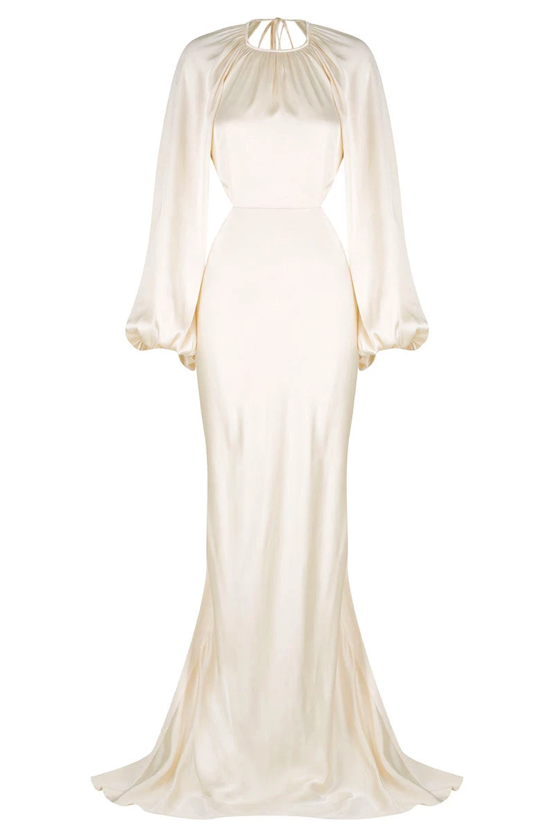 SKU: Bridesmaids 6566417858694 Categories: BRIDES, DRESSES, LA LUNE COLLECTION, Wedding Tags: All Dresses, BIS|Late June 2022, Fabric: viscose shine, New La Lune, Sibling|la-lune-balloon-sleeve-open-back-maxi-dress-cream