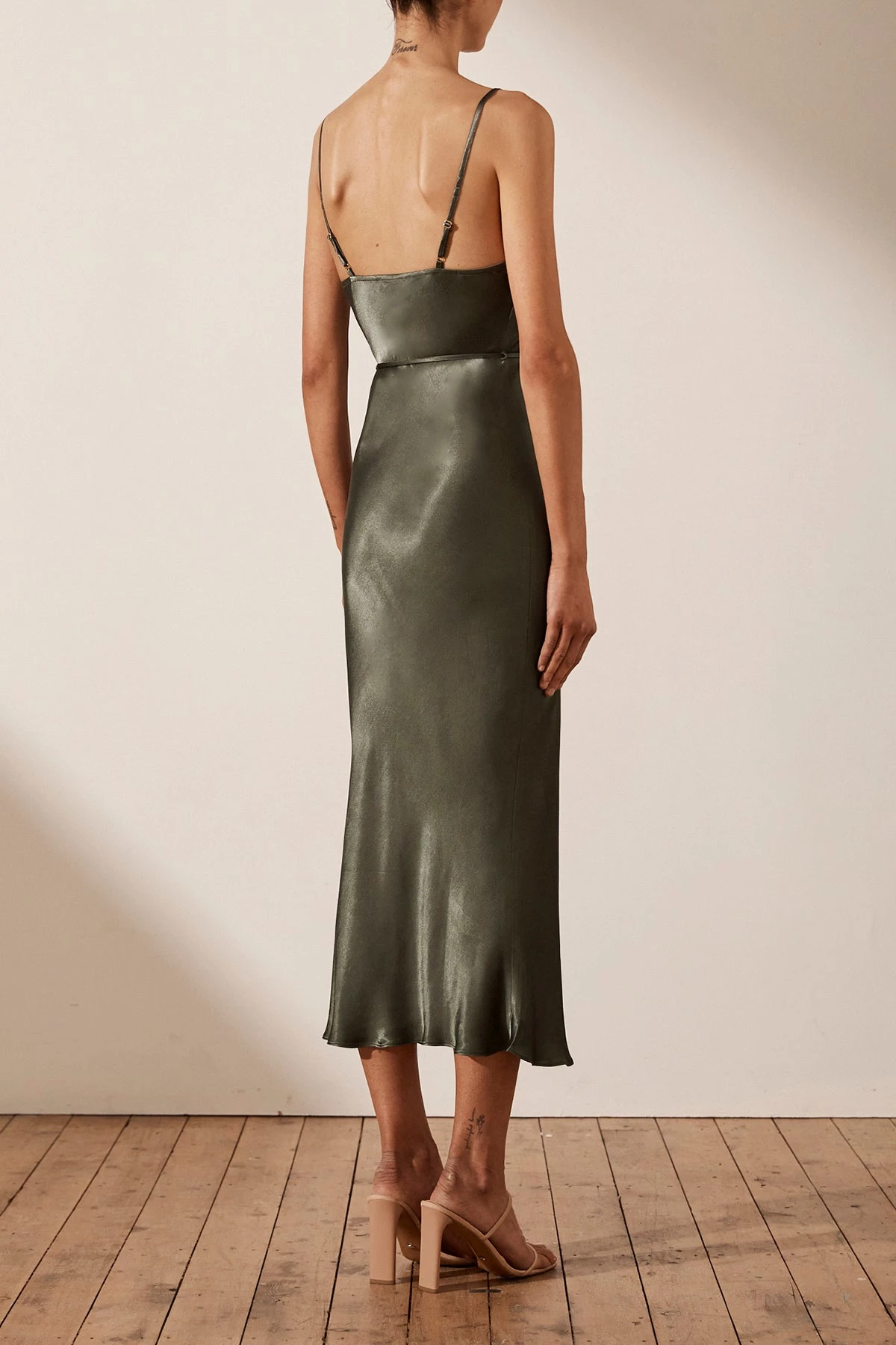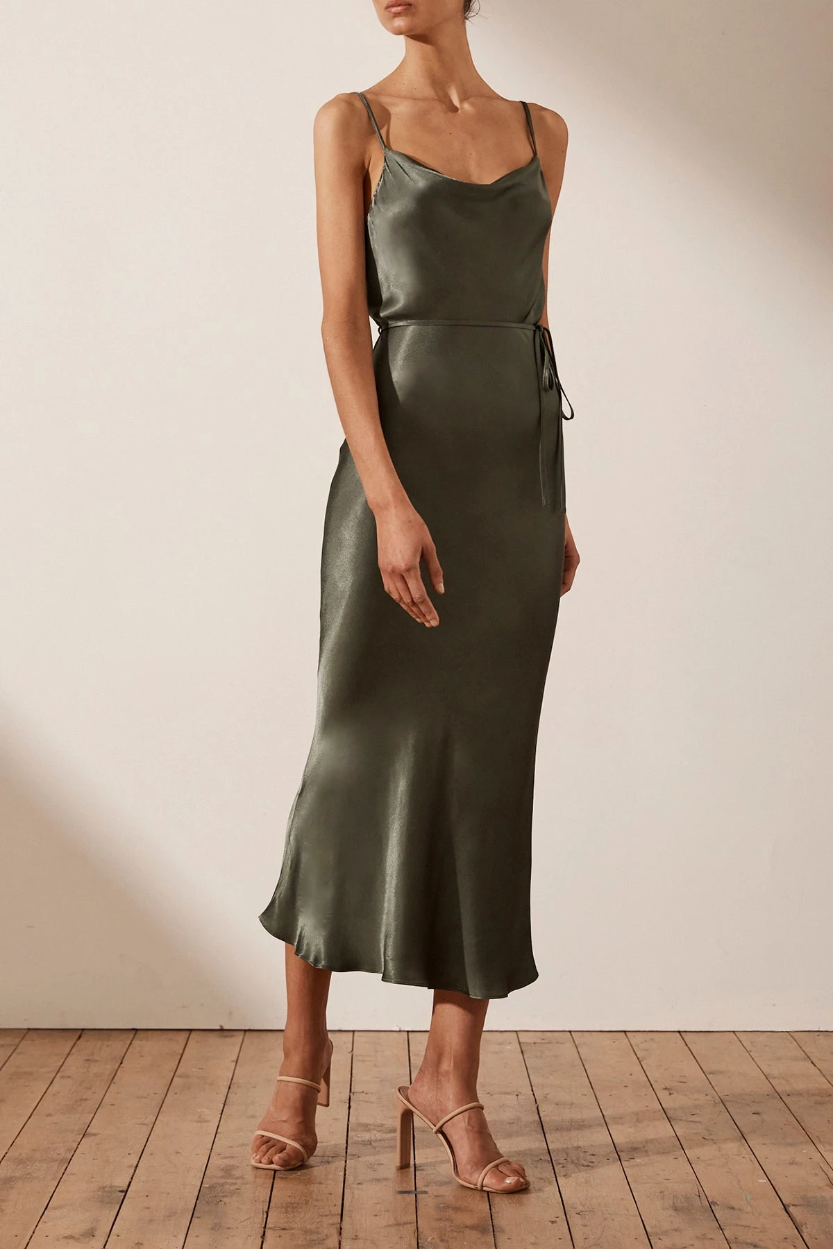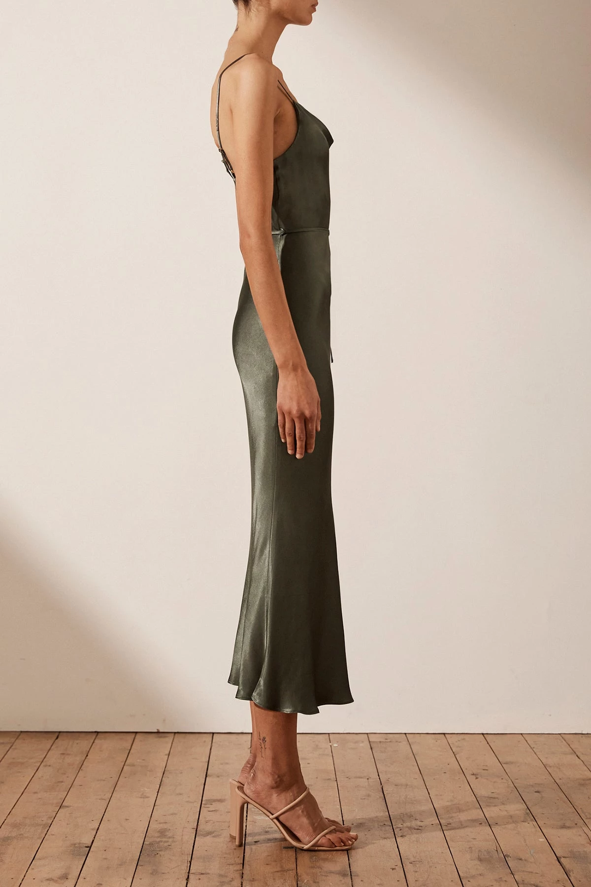 Shona Joy LA LUNE BIAS COWL MIDI DRESS – OLIVE