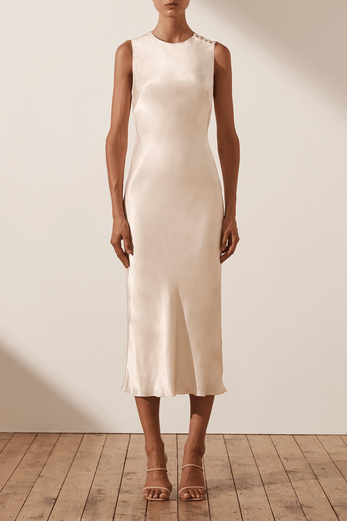 Shona Joy LA LUNE BIAS SLEEVELESS MIDI DRESS – CREAM
