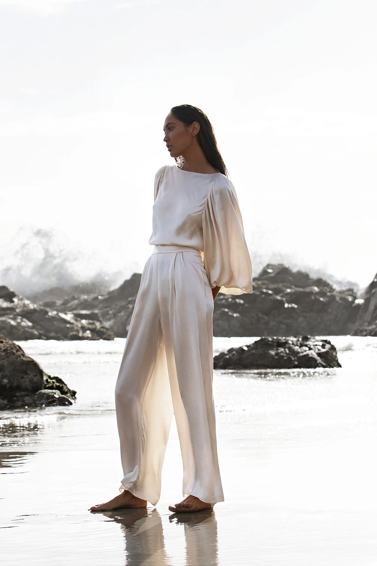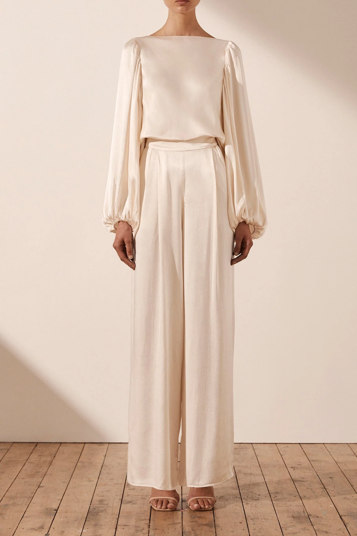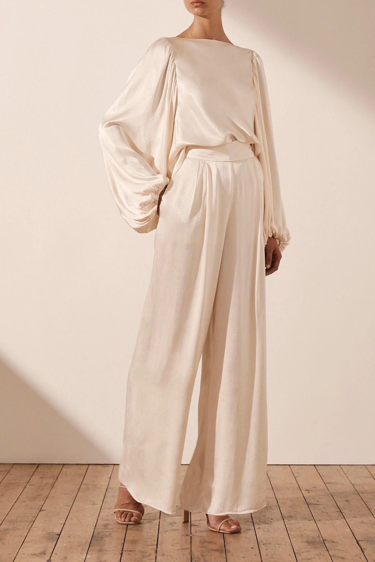 Shona Joy LA LUNE COWL BACK BALLOON SLEEVE BLOUSE – CREAM