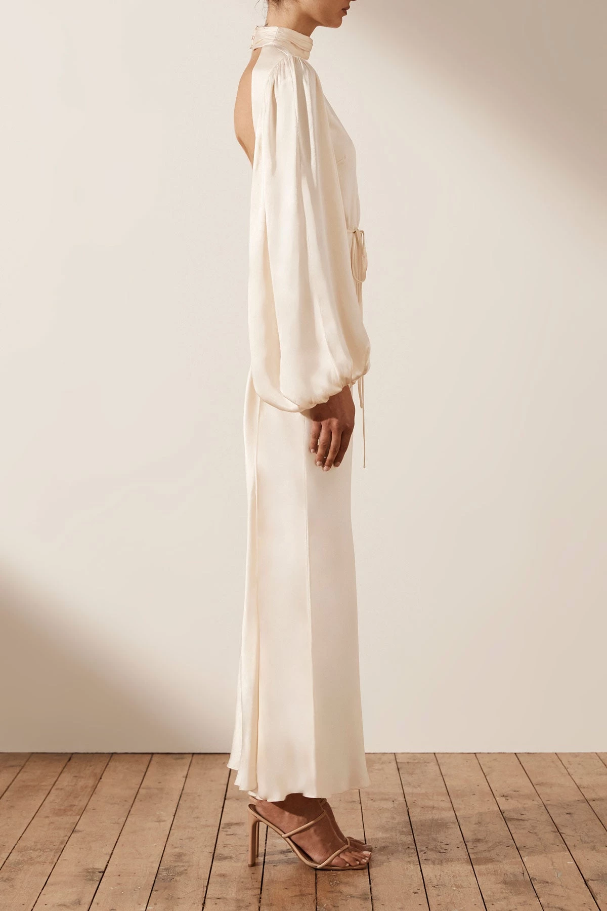 Shona Joy LA LUNE OPEN BACK WRAP MIDI DRESS – CREAM