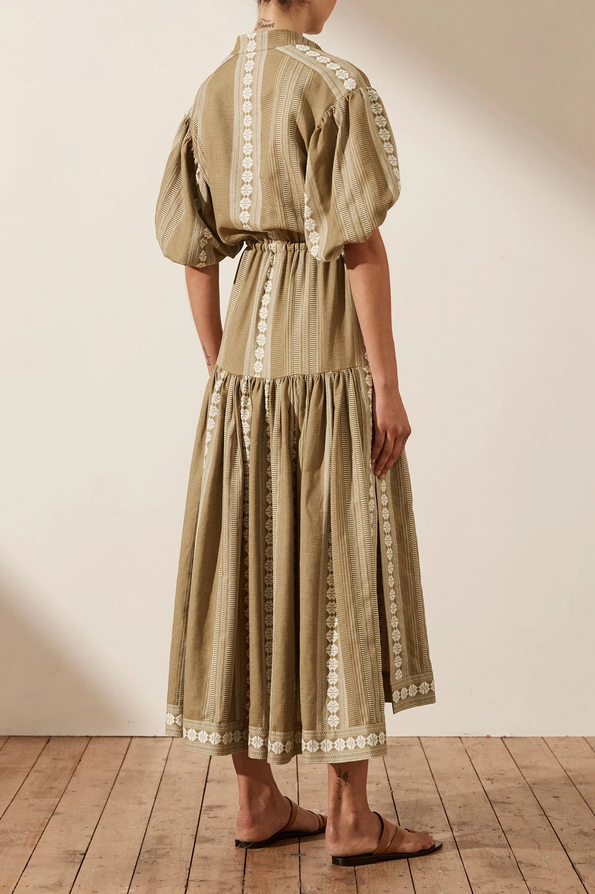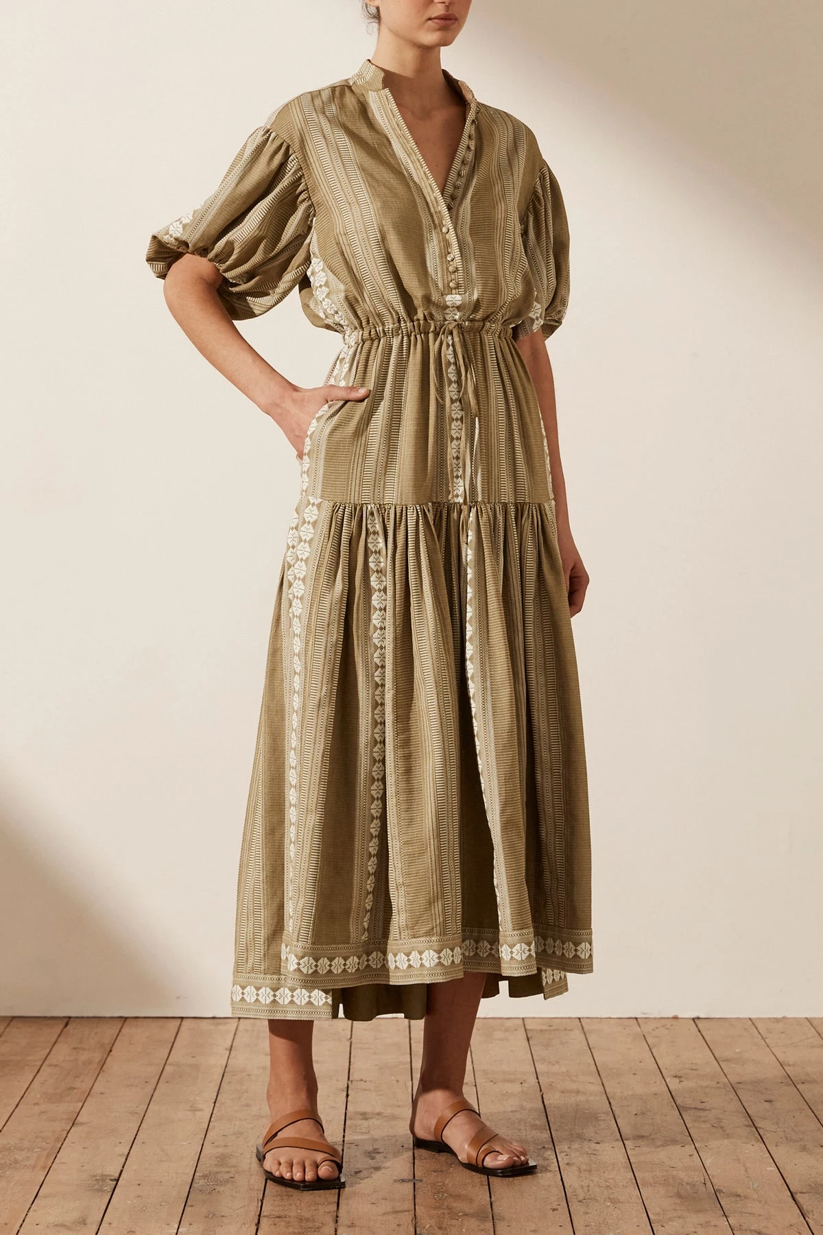 Shona Joy LIZETE SHORT SLEEVE DRAWSTRING MIDI DRESS