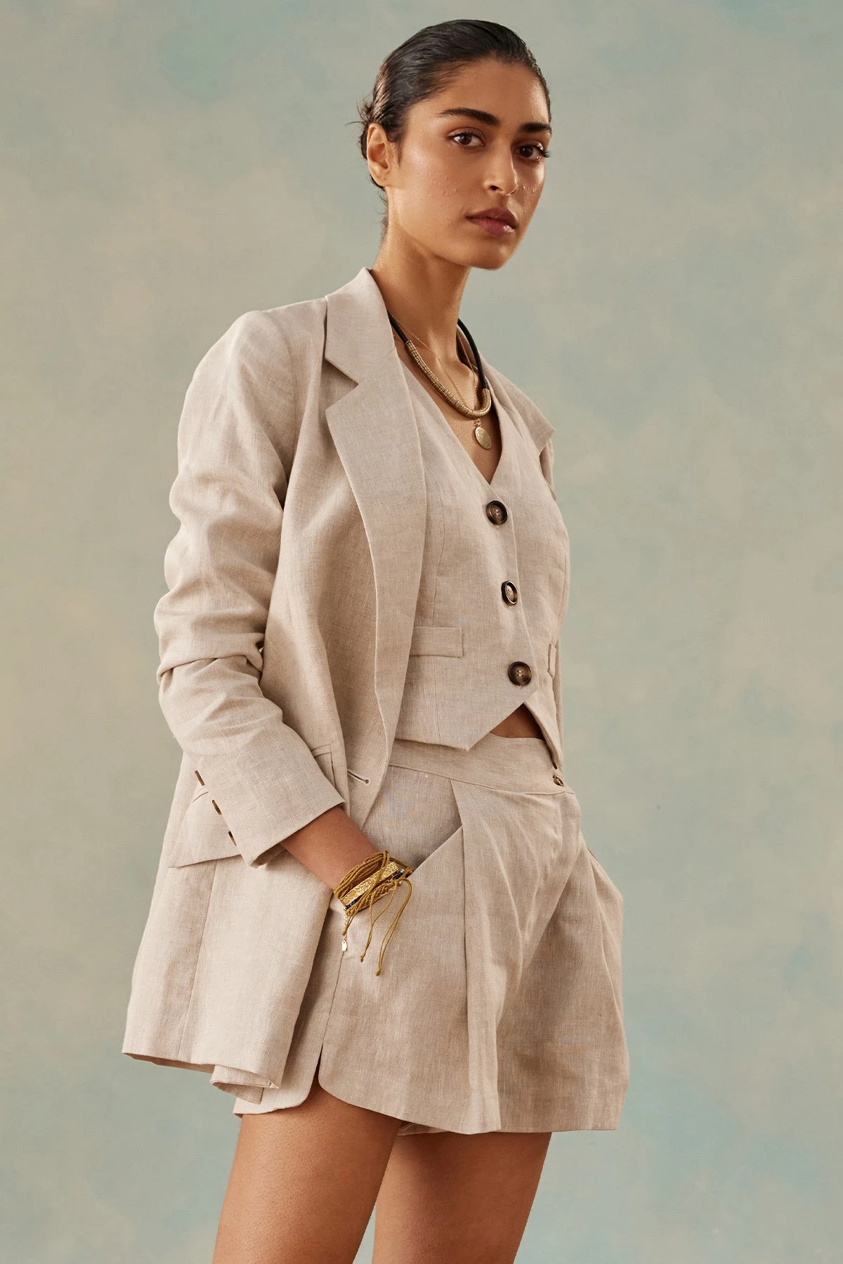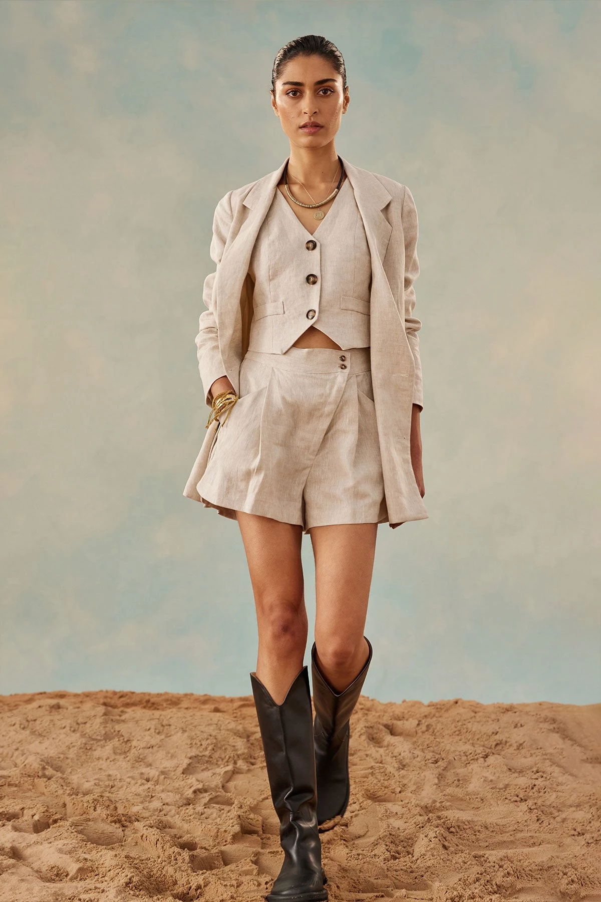 Shona Joy LUNA LINEN ASYMMETRIC SHORT – NATURAL SHORTS & PANTS
