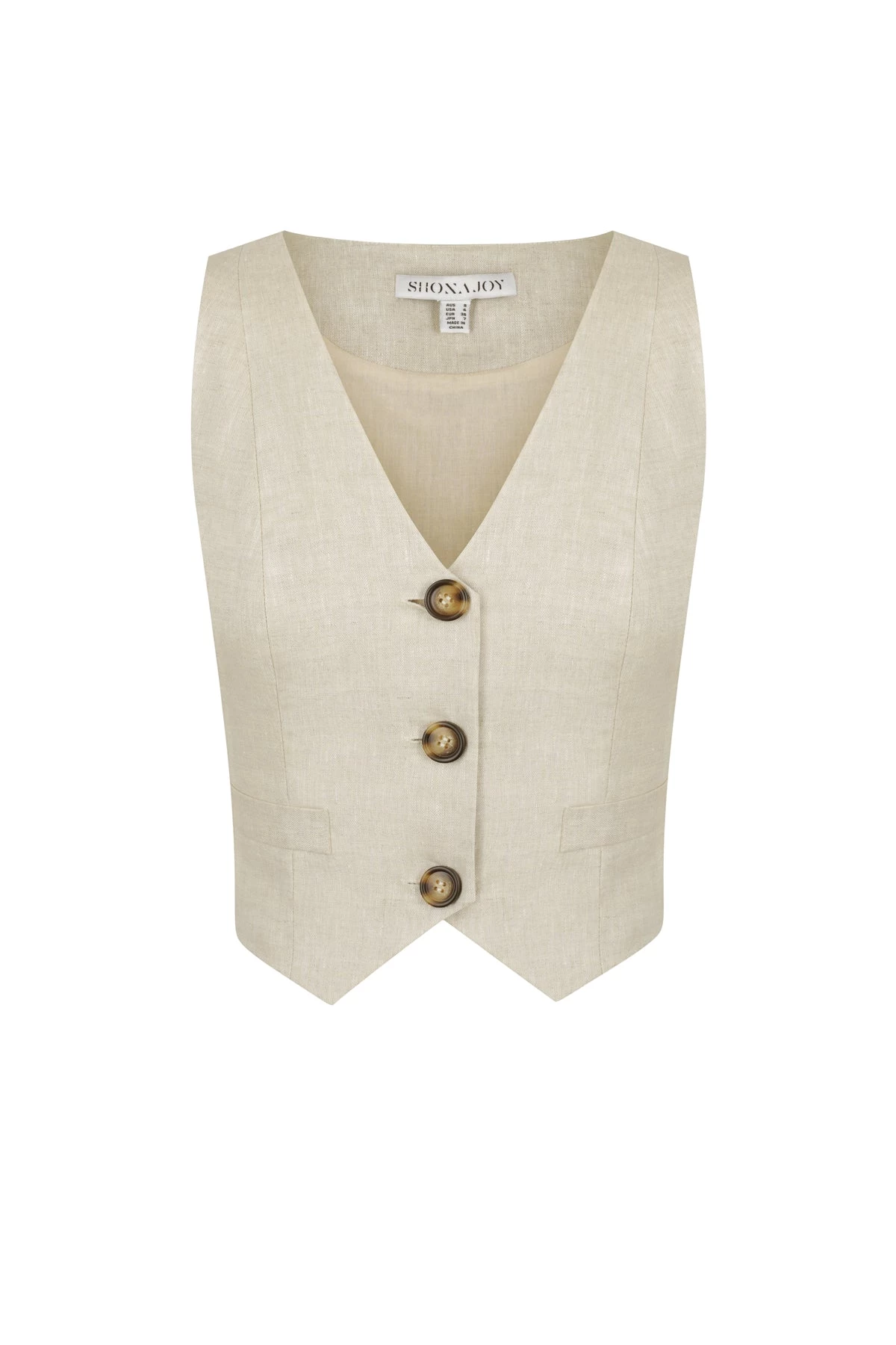Shona Joy LUNA LINEN TAILORED FITTED VEST – NATURAL TOPS