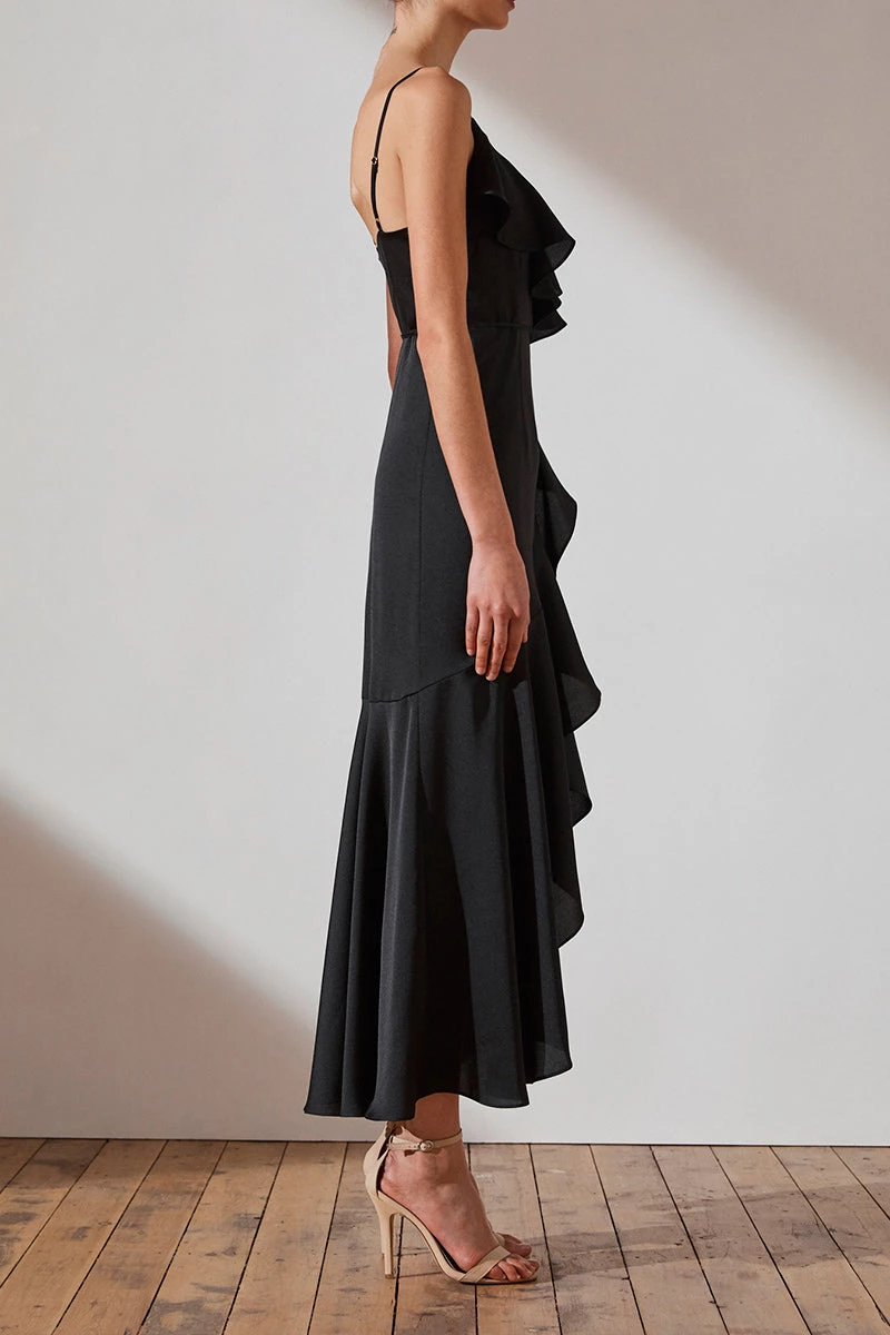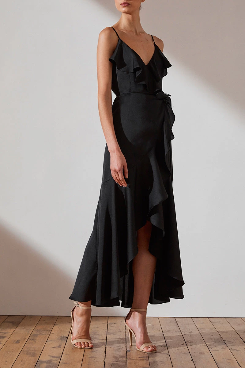 Shona Joy LUXE BIAS FRILL WRAP DRESS – ONYX