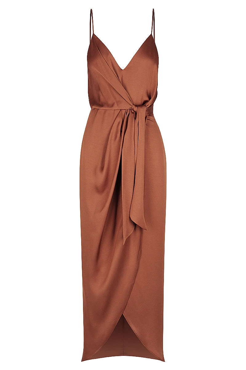 Shona Joy LUXE TIE FRONT COCKTAIL DRESS – MOCHA DRESSES