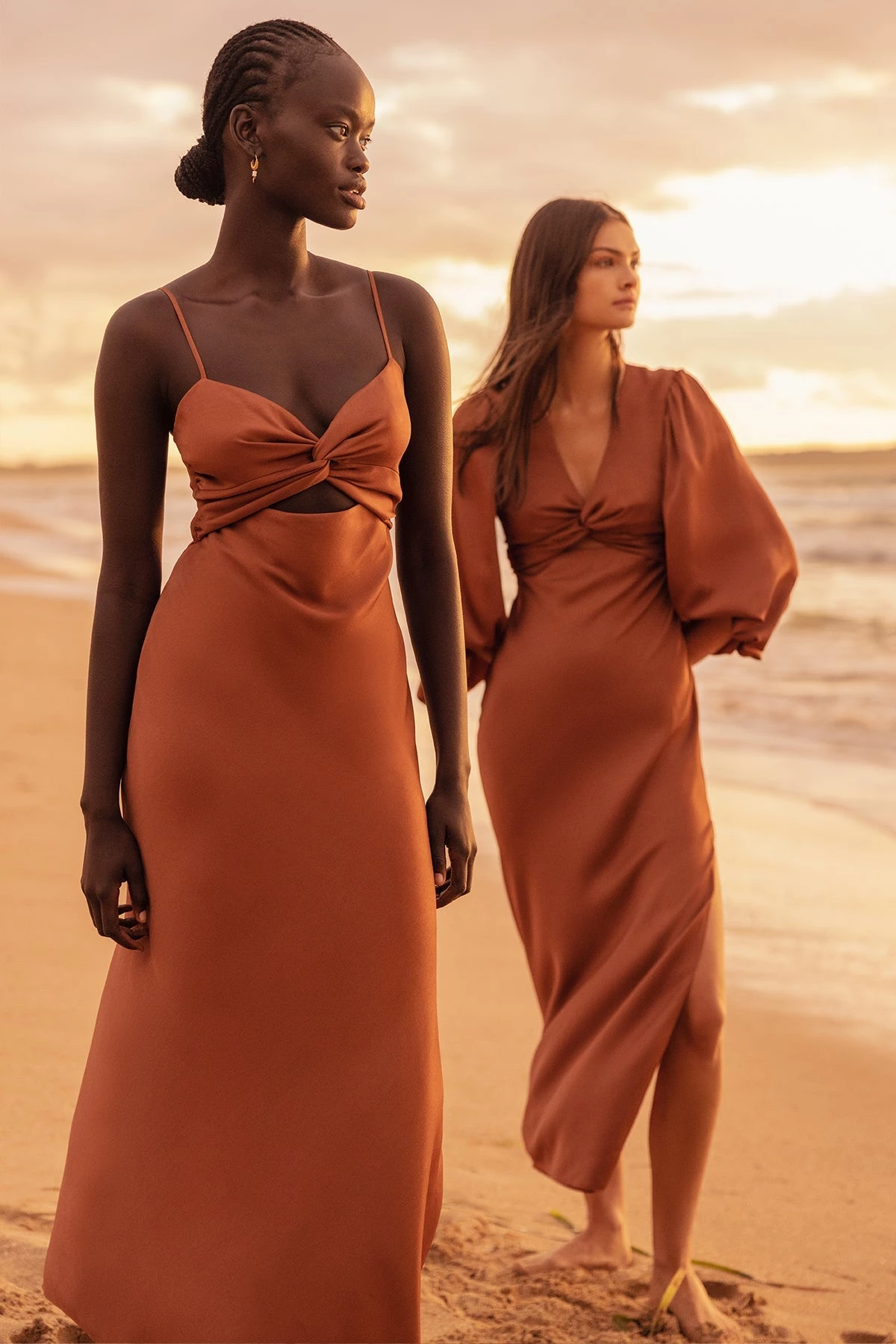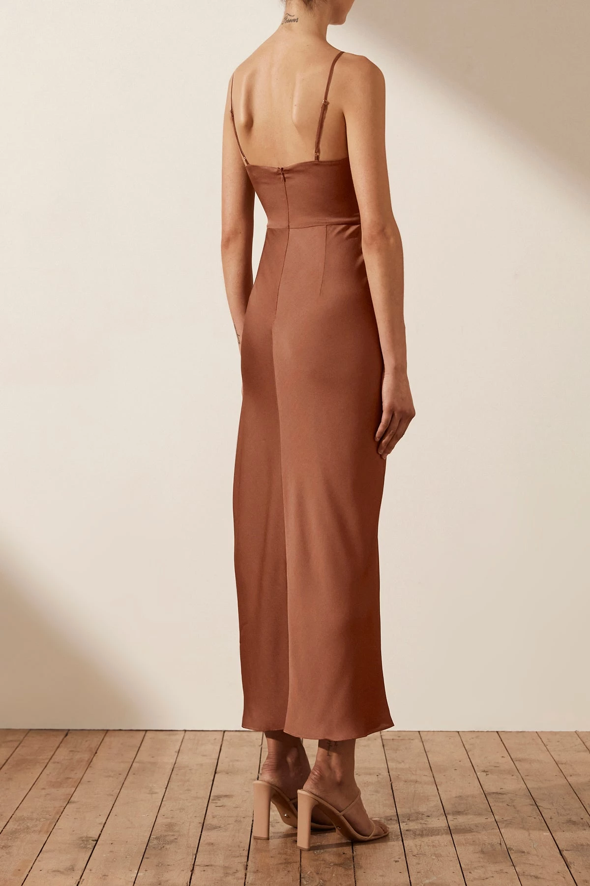 Shona Joy LUXE TWIST FRONT SLEEVELESS MIDI DRESS – MOCHA