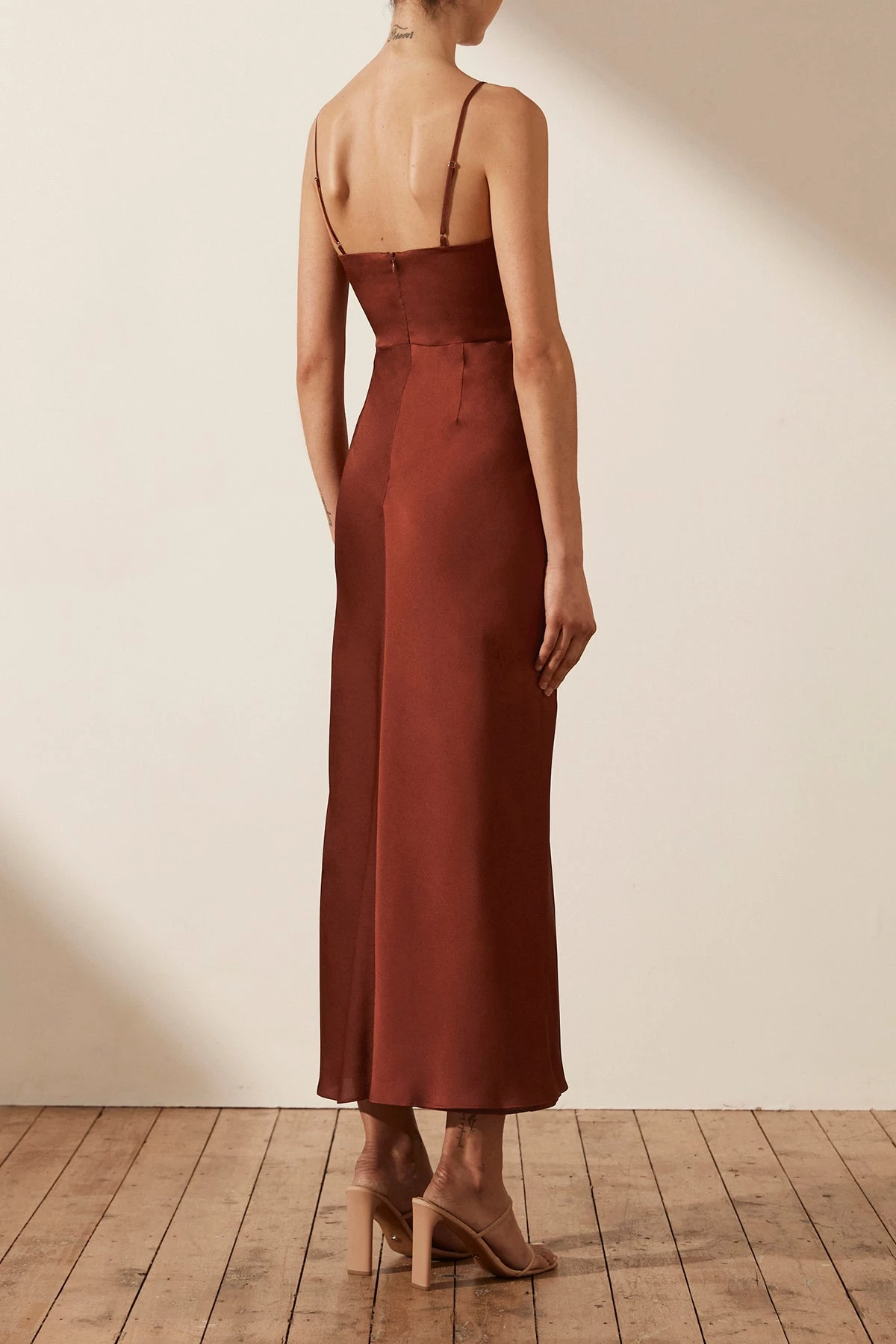 Shona Joy LUXE TWIST FRONT SLEEVELESS MIDI DRESS – SANGRIA DRESSES