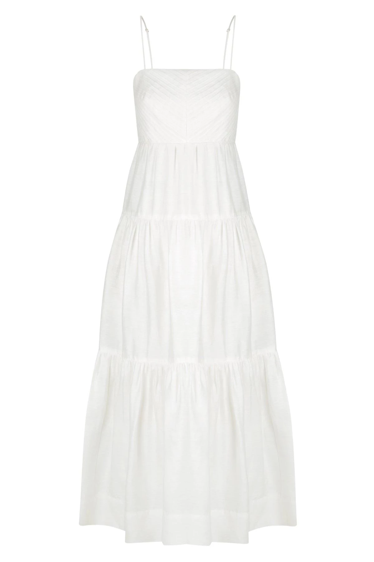 Shona Joy MAYA LINEN PIN TUCK OPEN BACK TIERED MIDI DRESS – IVORY