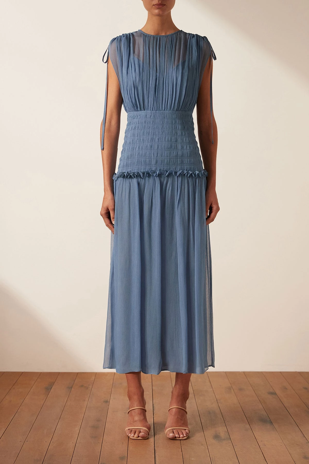 Shona Joy NOEMI SHORT SLEEVE RUCHED MIDI DRESS – OCEAN DRESSES