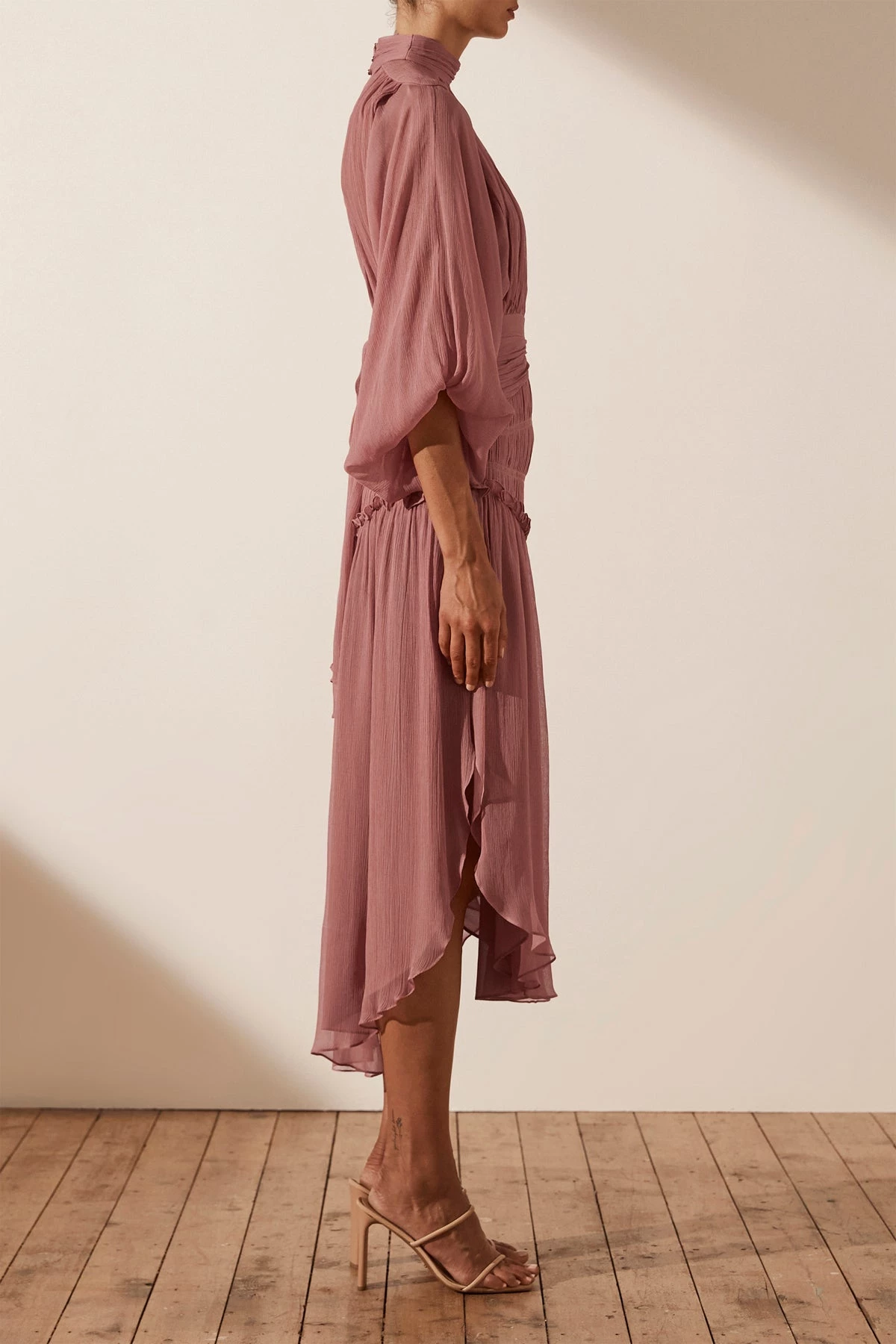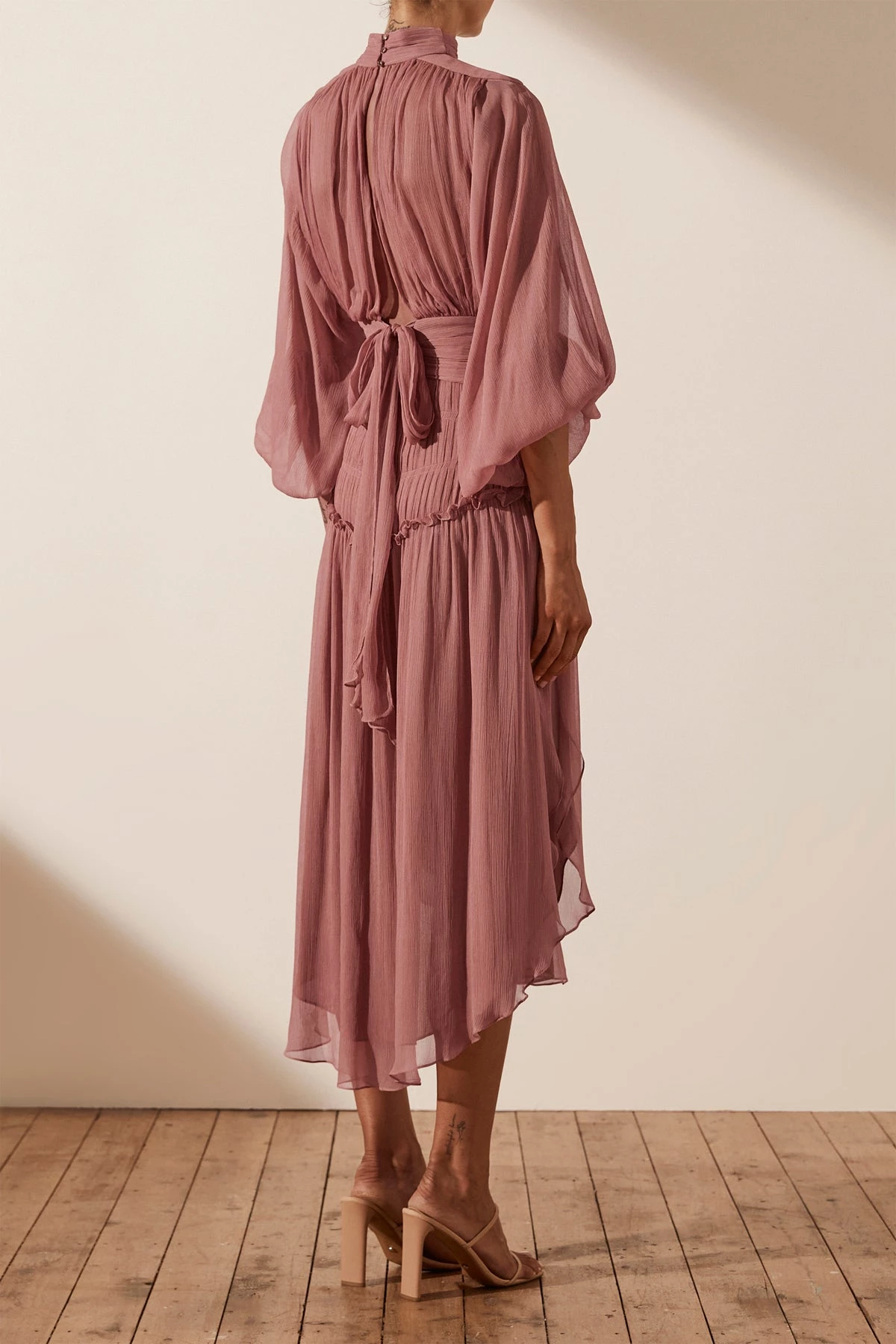 Shona Joy OLYMPIA LONG SLEEVE OPEN BACK MIDI DRESS – ANTIQUE ROSE DRESSES
