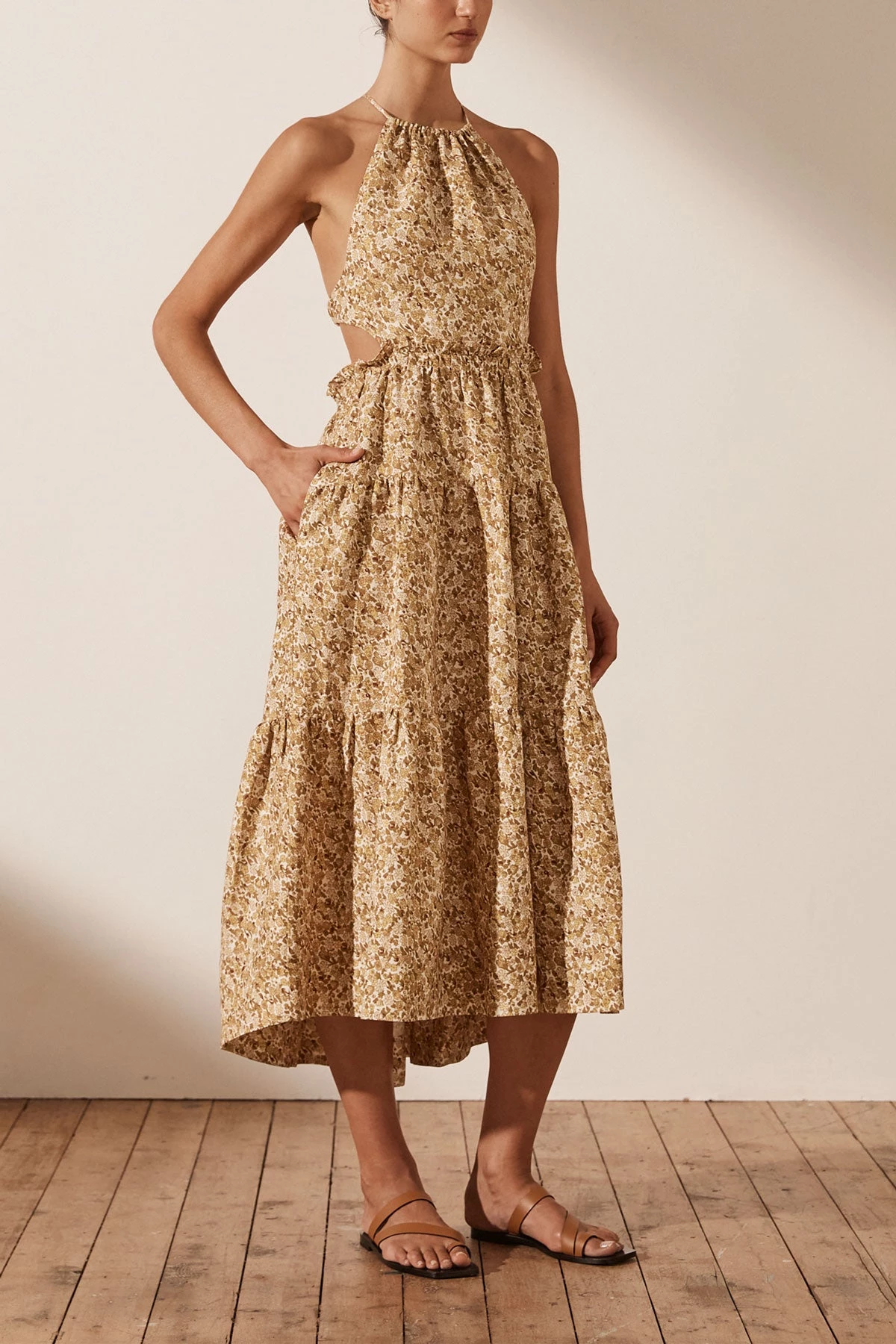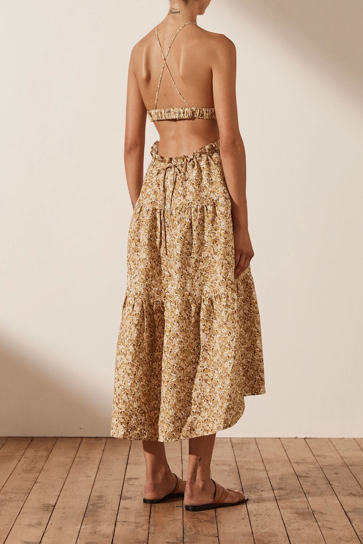 Shona Joy ORION LINEN BACKLESS MIDI DRESS