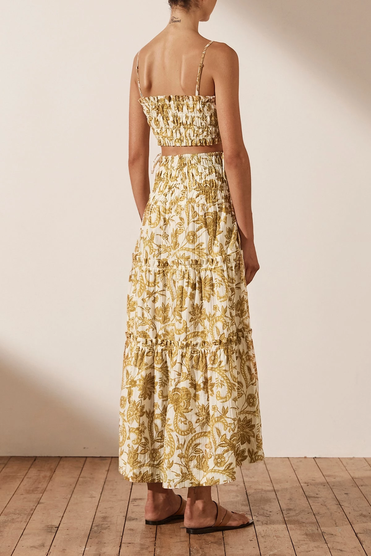 Shona Joy SAFFRON SHIRRED TIERED MIDI SKIRT
