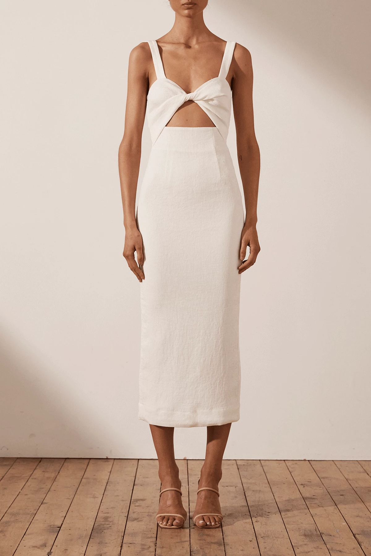 Shona Joy SIMONE FITTED CUT OUT MIDI DRESS – IVORY DRESSES