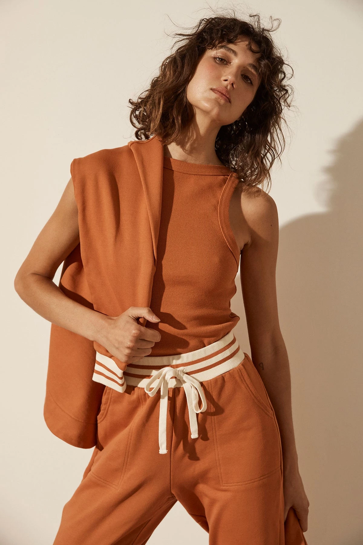 High waisted sweat pant with stripe detail in a soft french terry cotton.