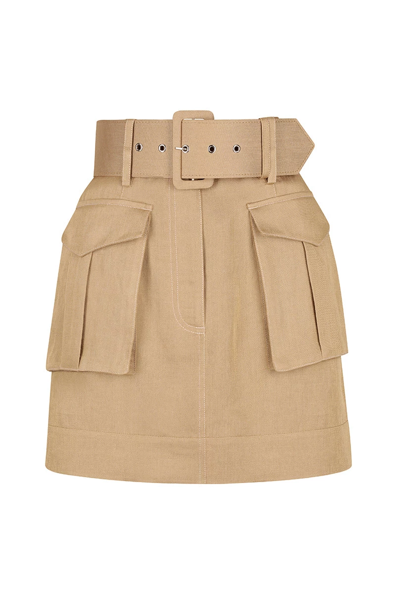 Shona Joy SKIRTS ELLINGTON LINEN MINI SKIRT – WHEAT